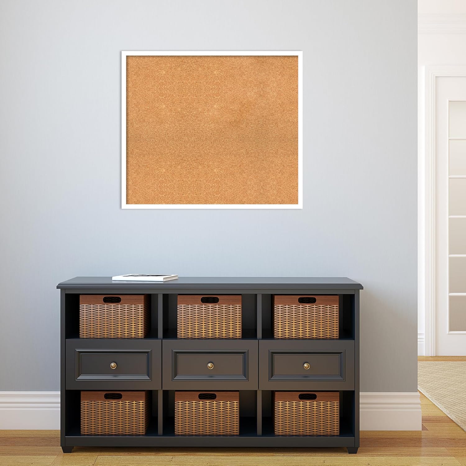 Amanti Art Natural Cork Board for Wall, 27x31 Vision Board with White Frame, Large Corkboard Office Decor for Home Organization, Modern Corkboard Pinboard to Display Items for Home Organization in