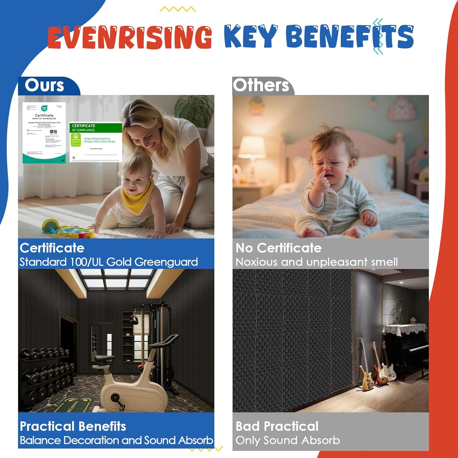 - 😟【WIDELY USE】 This large sound absorbing panels can well absorb the echo and noise,Effectively improve your sound environment and quality.such as home studios, gyms, game rooms, computer rooms, video shooting venues, rehearsal rooms, concert halls, recording studios, schools, conference rooms, Home theater, office,and more.