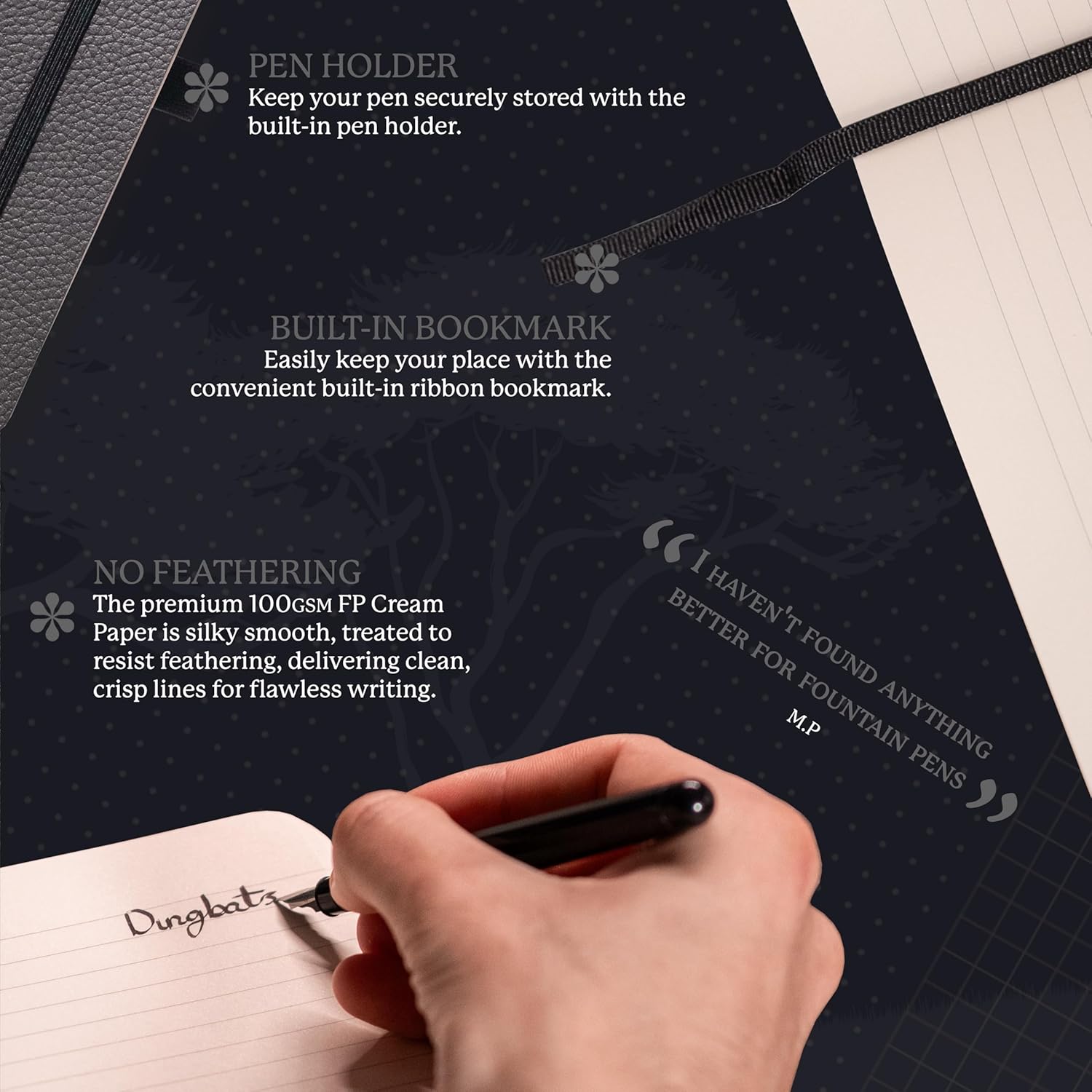 - SUSTAINABLY SOURCED, ENVIRONMENTALLY CONSCIOUS: Join us in our commitment to sustainability. Crafted from recyclable materials and FSC certified paper, our notebooks are a sustainable option and proudly Vegan Certified. Additionally, for our UK sales, Dingbats* Notebooks Ltd donates 2% of its revenue to WWF-UK, a charity registered in England and Wales (1081247).