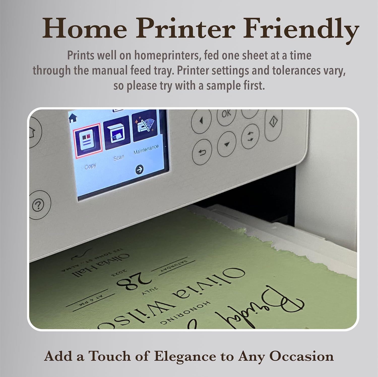 - [Home Printer Friendly]: Our cotton paper for deckled edge 150gsm paper is compatible with home printers, offering endless possibilities when used as wedding invitation paper, or for cards, menus or even books. For best results, feed one sheet at a time through the manual feed tray. As printer settings and tolerances can vary, we recommend testing with a sample first to ensure optimal print quality. 50 sheets of 8.25βx11.7β / 21x30 cm, A4 size paper