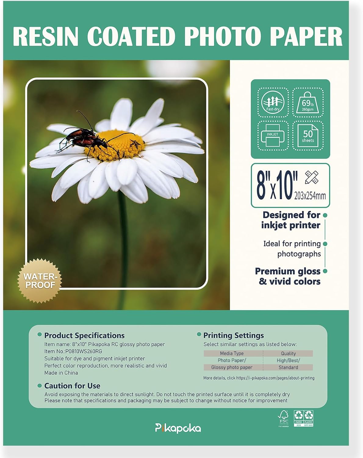 - Archival-Grade Quality: Pikapoka 8x10 RC glossy photo paper is more durable due to its protective resin coating. Can last for years without fading