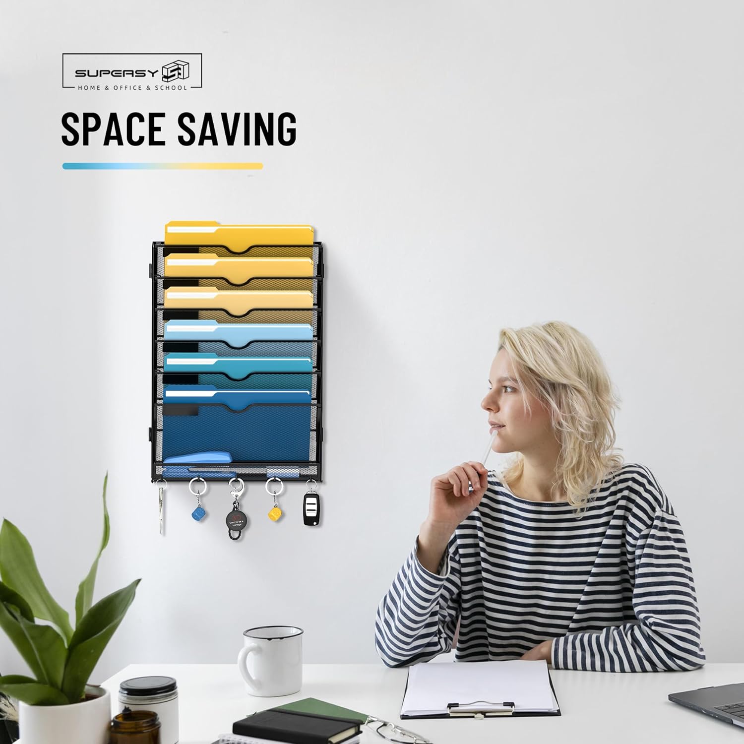 - [Robust Metal Structure] The SUPEASY wall file organizer is made of high quality coated mesh metal which is sturdy and robust enough to offer you a long term service life for your home and office.