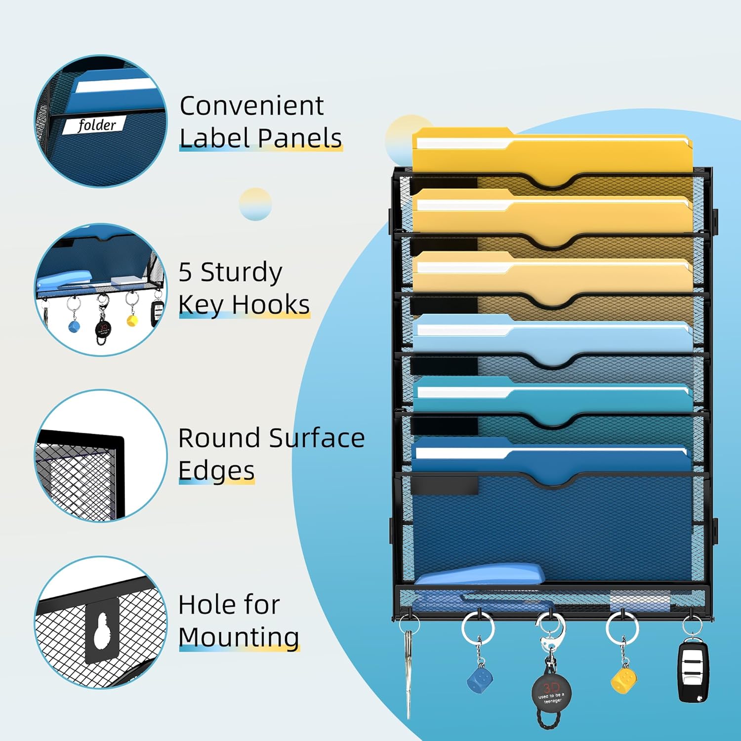 - [Humanize Design] Each wall file organizer with etra 5 sturdy key hooks, you can hang your keys and other small staffs. Hooks design for this wall file holder can remove the trouble to find your keys on the way out the door, saving time in searching.