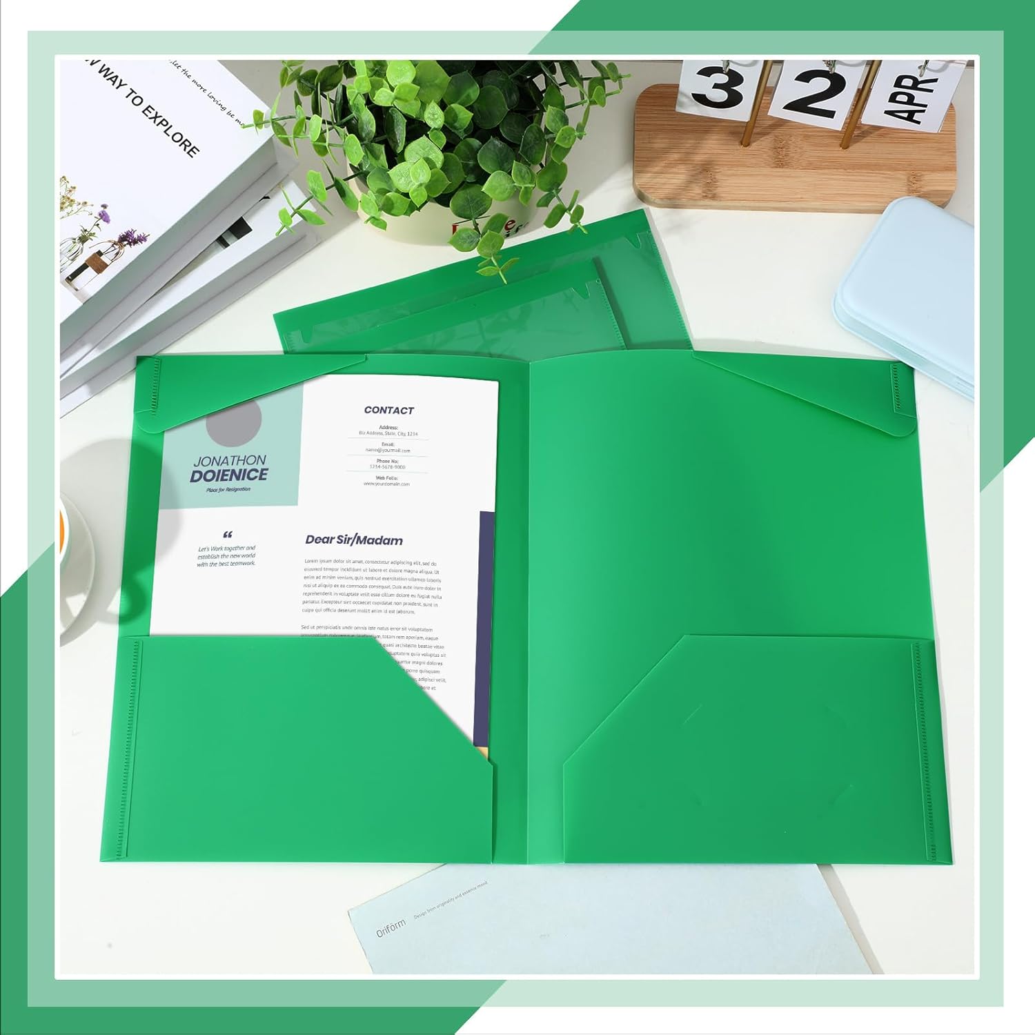 - Quality Material: manufactured from sturdy PP plastic, these plastic pocket folders provide an extended lifetime of use; Moreover, the green color adds a touch of sophistication to your office or study resources