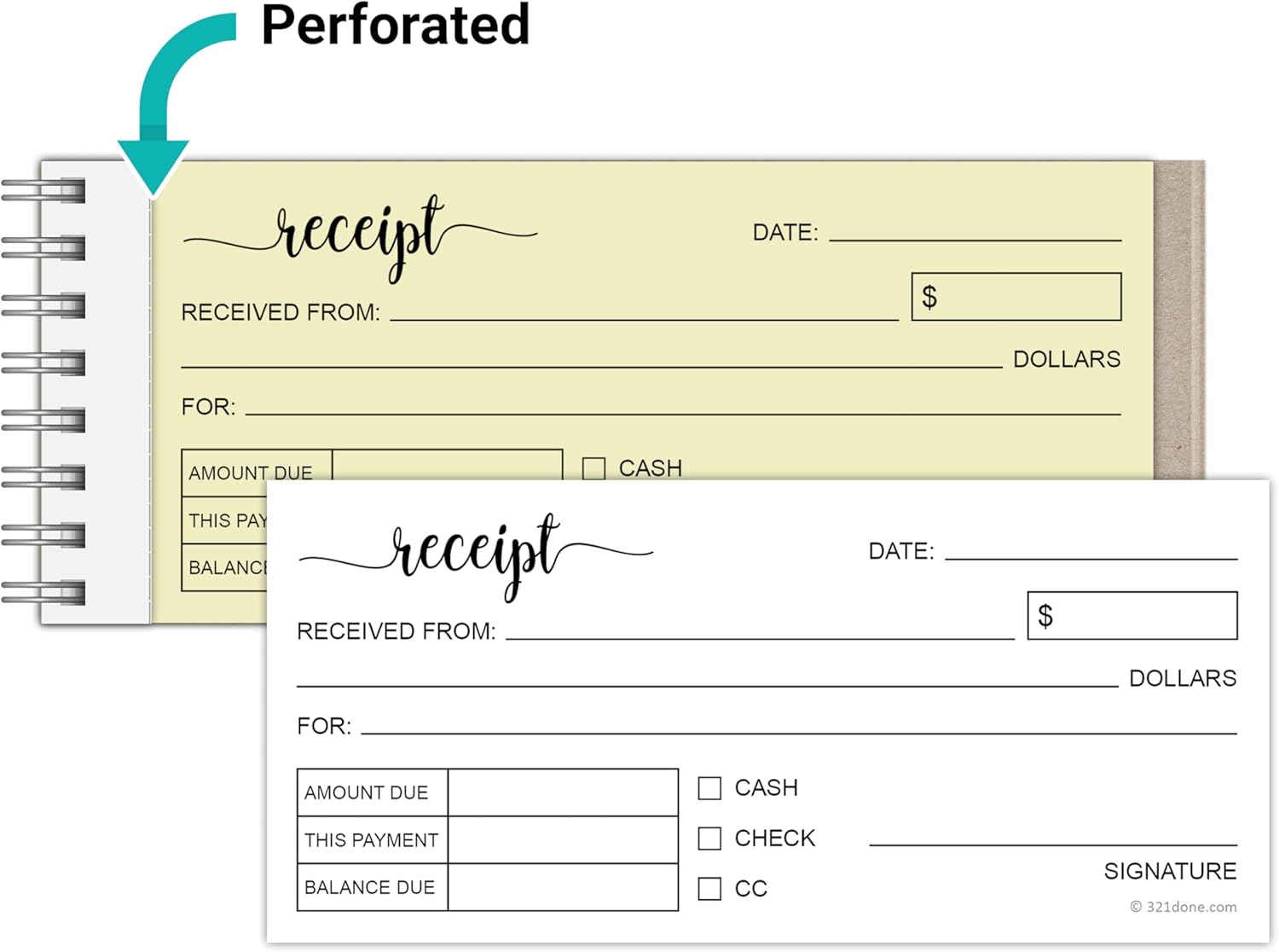 321Done Receipt Book, 2-Part Carbonless Spiral Bound 2.75x6 - Made in USA, 50 White/Yellow Pages, Receipt Book with Carbon Copies for Small Business
