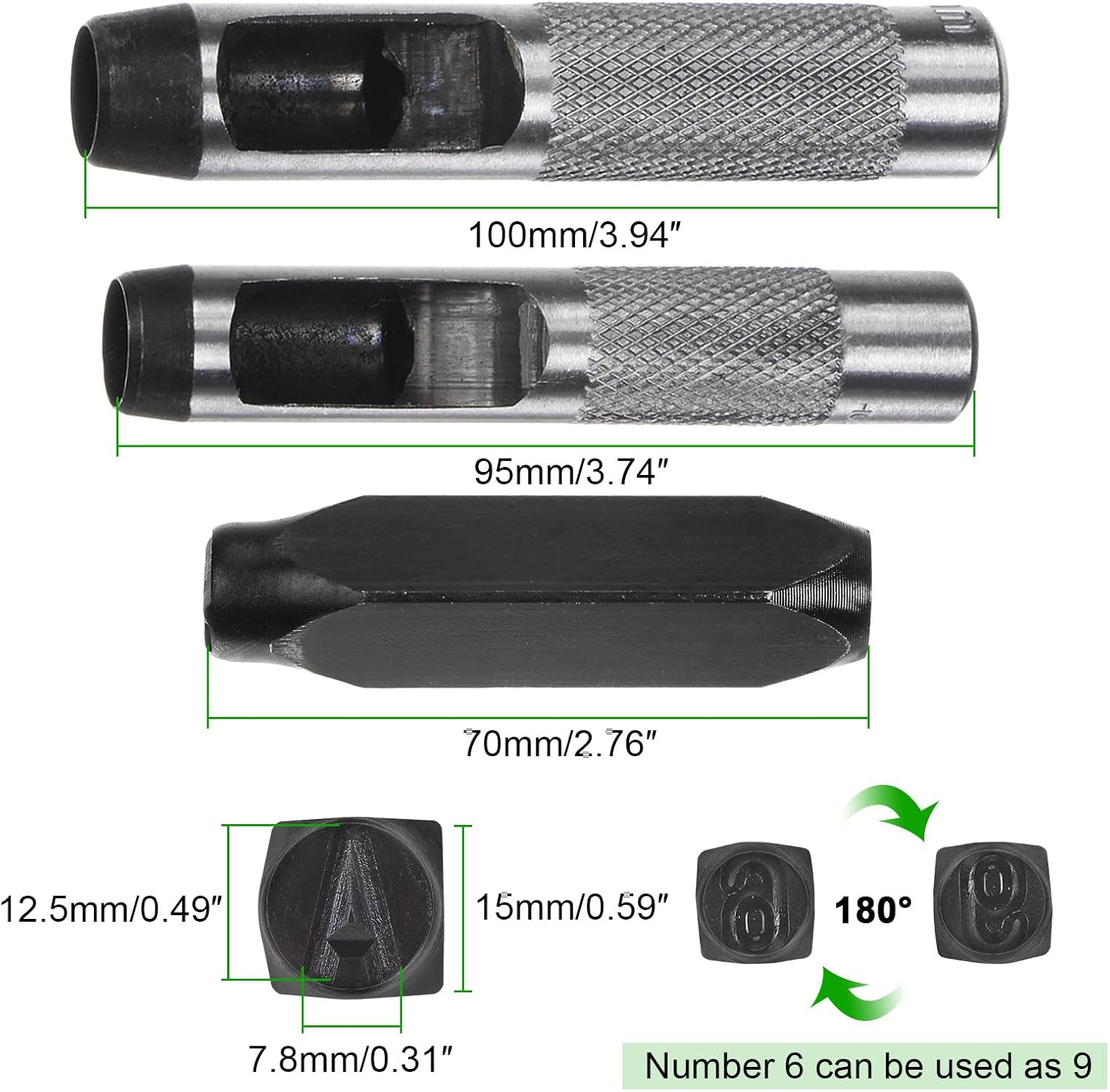- High hardness β These metal stamps are made of carbon steel, offering a high level of hardness (HRC 45-50), suitable for engraving on aluminum surfaces. (Engraving on harder surfaces may result in less clear lettering.)