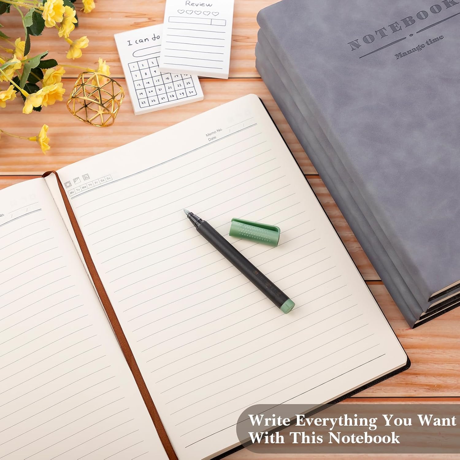 SATINIOR 5 Pack A4 Notebooks Large Journal 360 Pages Leather Softcover Hardcover Notebooks Thick Paper Lined Notepad for Office School Business Note Taking Writing, 8.5'' x 11''(Gray)