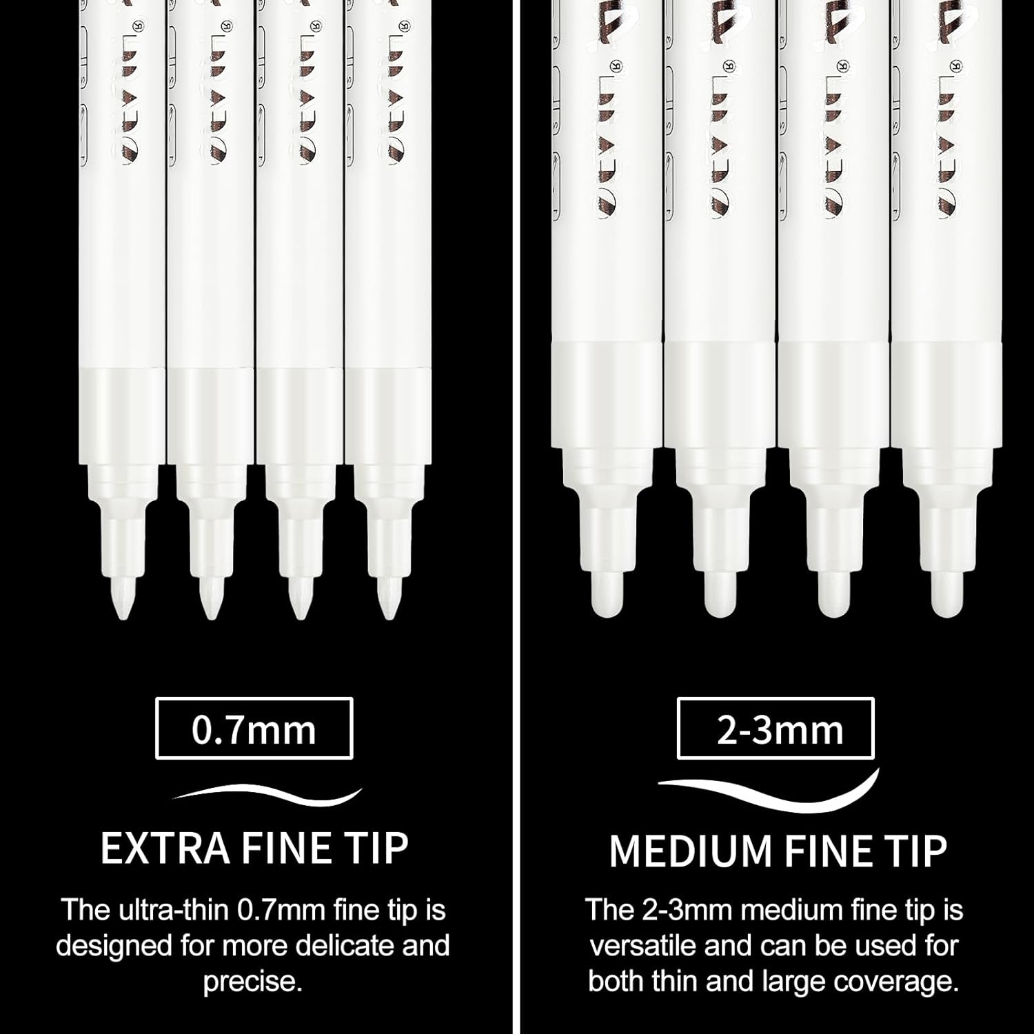 - Extra Fine & Medium Tips for Every Detail: Switching between fine outlines and bold fills with our 0.7mm extra-fine and 2-3mm medium tips. Whether you're sketching delicate patterns on your scrapbook or adding chunky strokes to a DIY home decor project, Or for correcting, covering writing errors on paper and rewriting, our markers have got you covered.