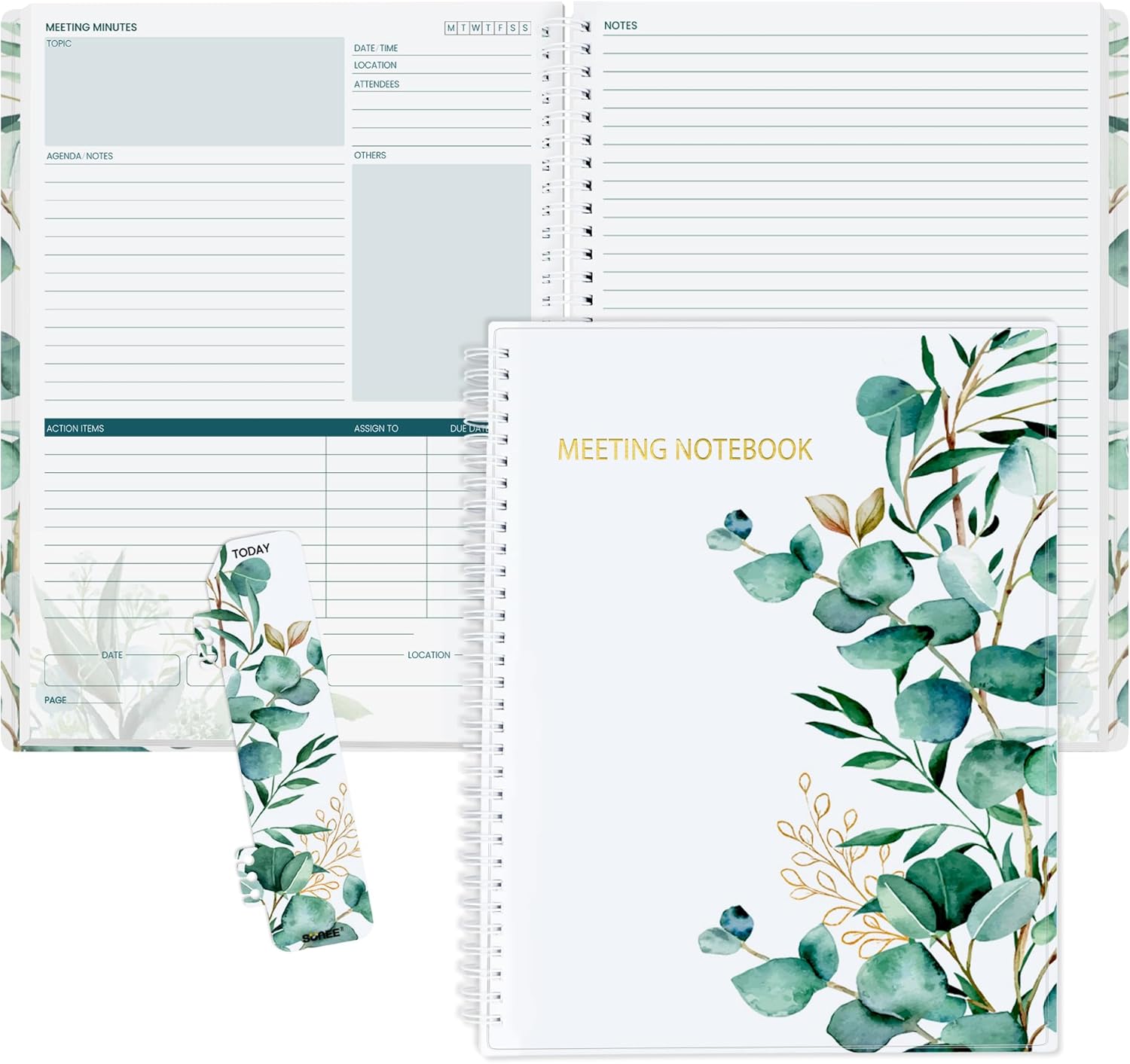 SUNEE Half Meeting Half Note - 8.5"x11" Professional Notebooks for Work - 160 Pages, A4 Size Project Planner, Spiral Meeting Agenda/Minutes Organizer for Women Men, Note Taking, Office & Business