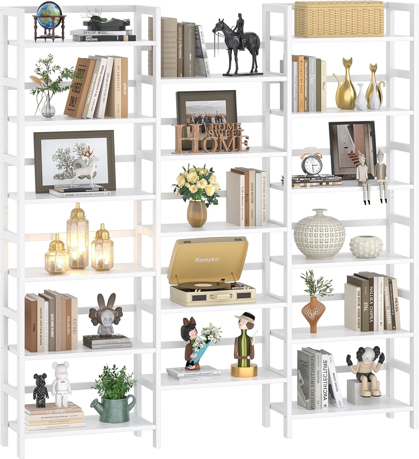 Homykic Bamboo Triple Wide Shallow Bookshelves and Bookcases, 6-Tier 6ft Tall Bookshelf with 17 Open Display Shelves, Super Large Freestanding Book Shelf for Home Office, Bedroom, Living Room, White