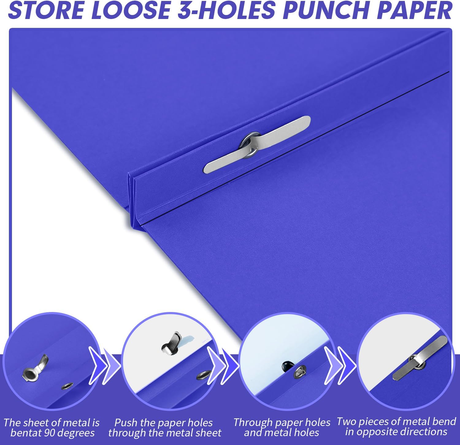 - 【Practical Design】Folders with pockets and metal prongs, design with 2 stay-put tabs for fastening 3-hole punched paper, preventing the paper from falling out. Save workspace and keep your important files safe.