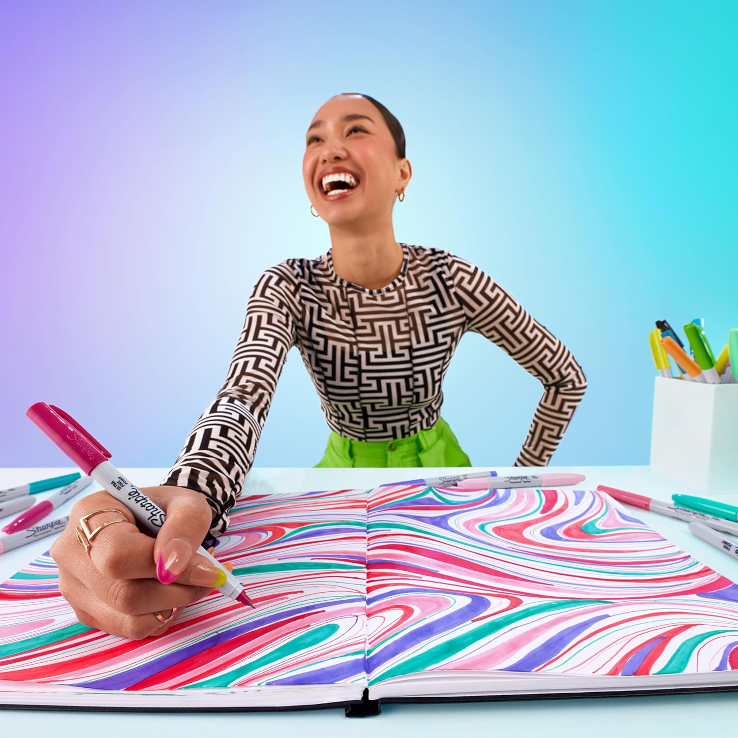 Sharpie Glam Pop Permanent Markers, Ultra Fine Tip Set, Coloring and Drawing, Resilient Ink, Assorted Colors, 24 Count
