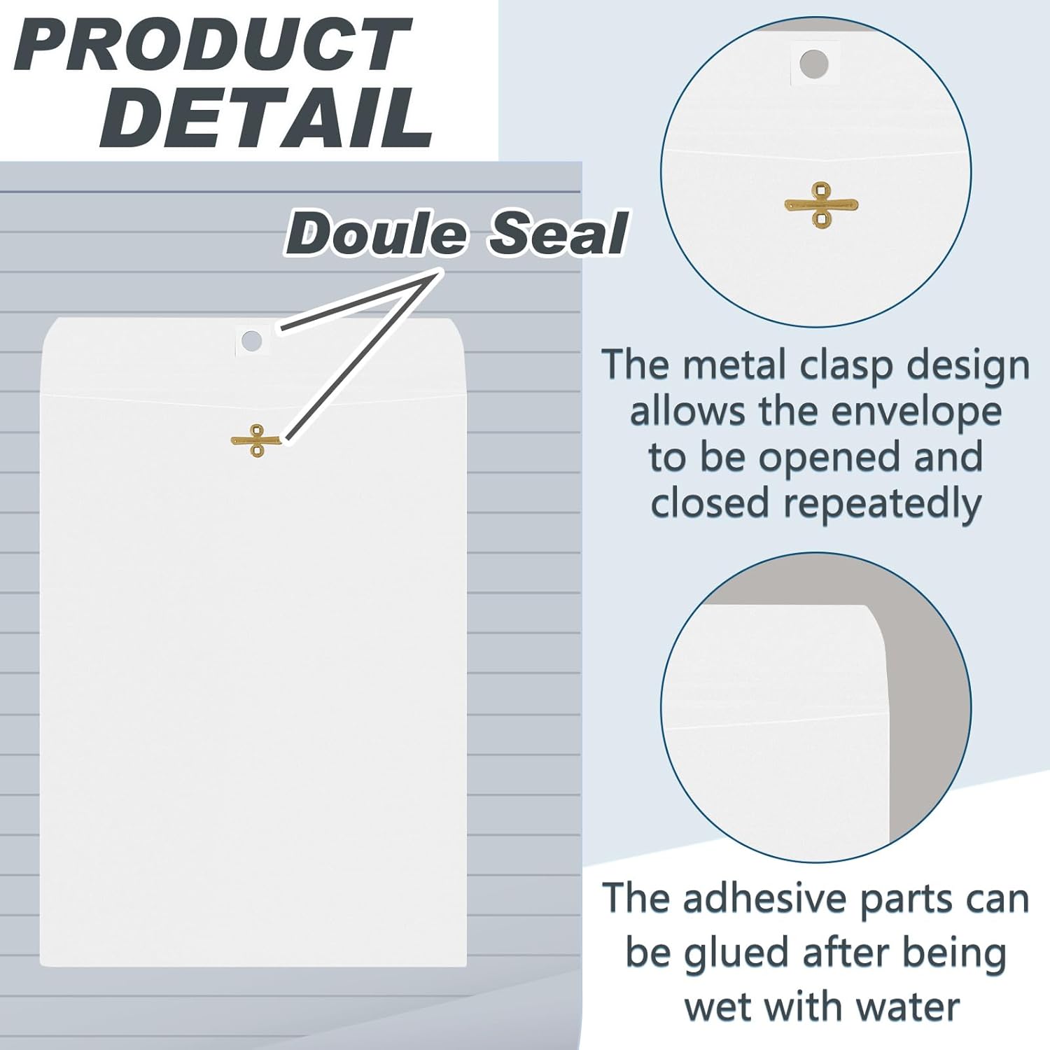 - Practical Sealing Mechanism: the metal clasps together with moisture activated gluing provide a secure grip and make the envelope easy to open and close repeatedly without damaging the content inside; The sealing mechanism ensures your documents stay safe and protected during handling