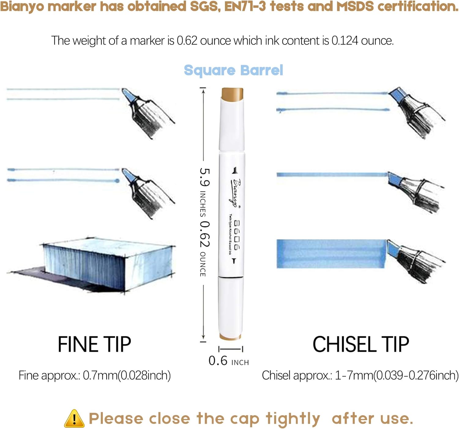 - Versatile Applications: From coloring books to architectural sketches, our Bianyo Alcohol Markers Set offers endless possibilities for artistic expression. Let your imagination run wild as you bring your ideas to life with precision and flair
