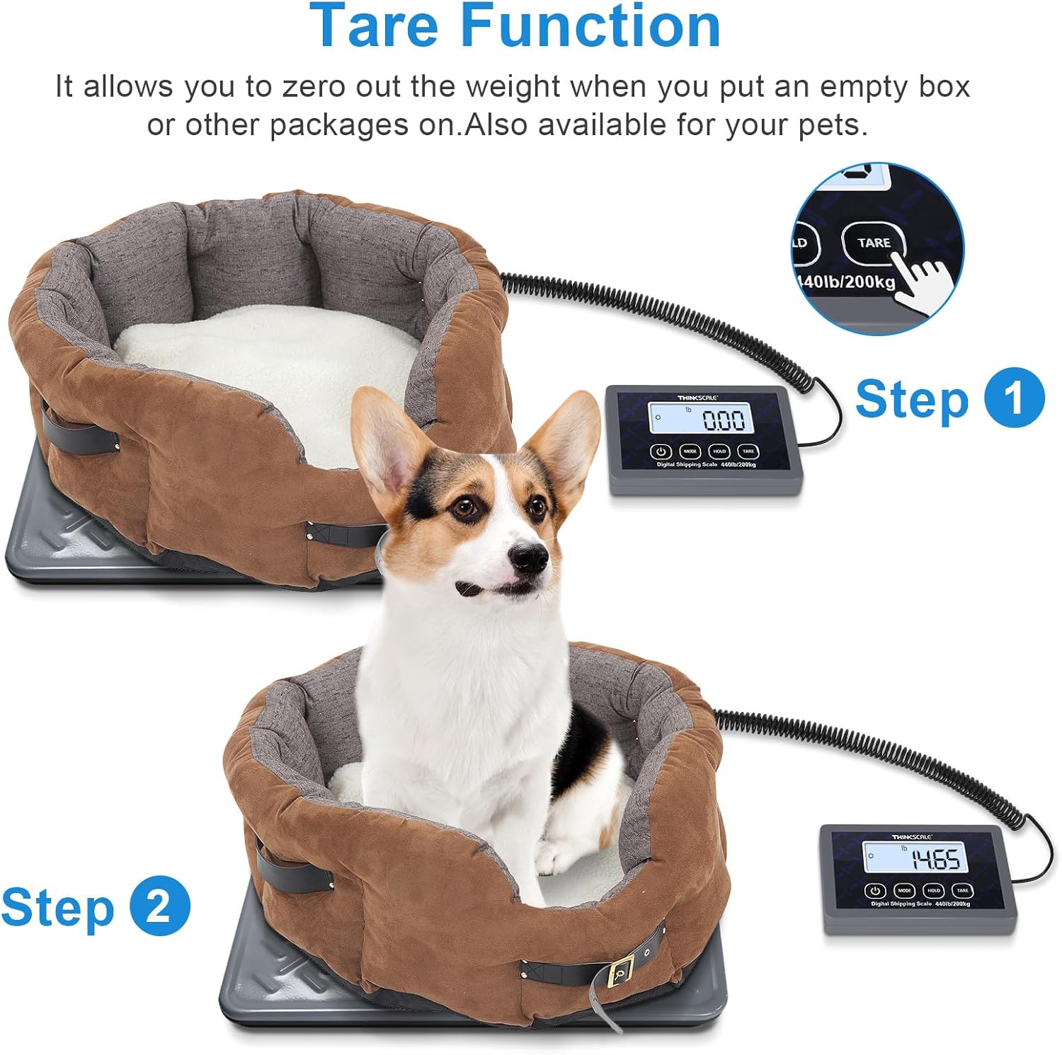 THINKSCALE Shipping Scale, 440lb/1oz Digital Heavy Duty Postal Scale, Strong Steel Platform, Postage Scale with Hold/Tare/LCD Display, Scale for Packages, Luggage Scale, Battery&AC Adapter Included