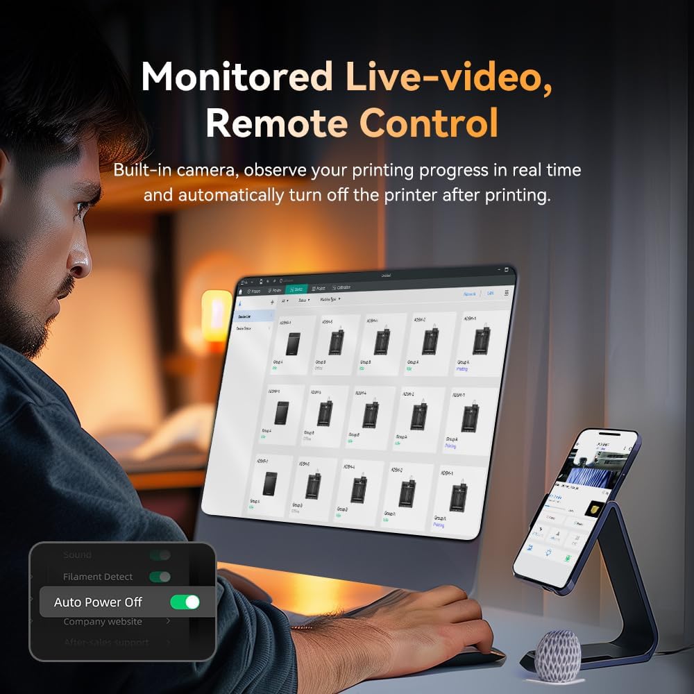 - Smarter Control & More Efficiency: Orca-Flashforge slicer supports one-click group file sending and multi-printer network print monitoring, while you can use Flash Maker APP to manage devices, remote monitoring, view the print status in real time from anywhere at any time, adjust parameters, etc.