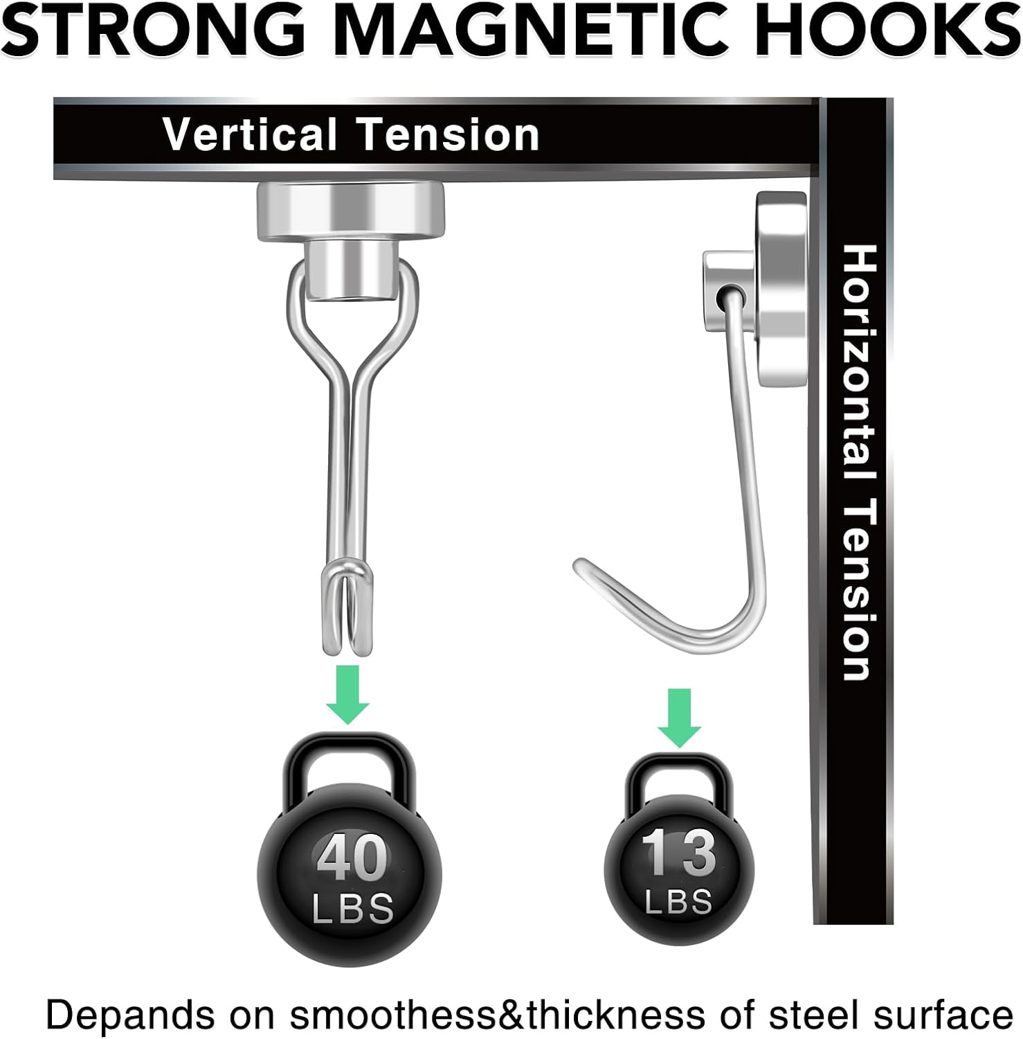 MIKEDE Magnetic Hooks, 40Lbs Heavy Duty Neodymium Magnet Hooks Magnetic Swivel Hooks for Hanging, 10 Pack Rust Proof Strong Magnets with Hook Magnetic Metal Hanger for Fridge, Toolbox, Storage