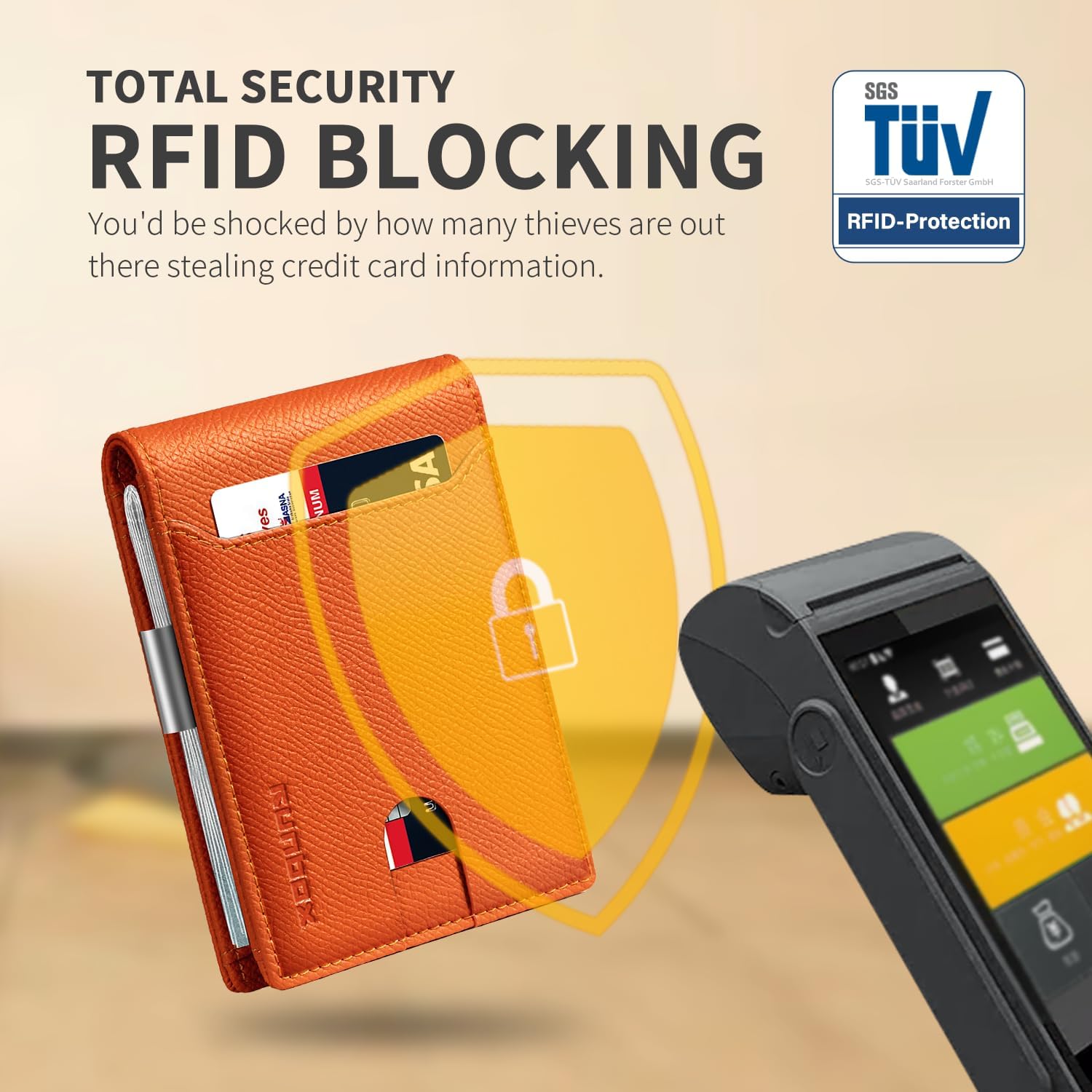 - ππ ππ ππ§ππ’-ππ‘πππ ππππππππ - this slim wallet for men equipped with German Instiute Certified RFID Security technology, a unique metal composite, engineered specifically to block 13.56 MHz or higher RFID signals to protect the valuable information and privacy