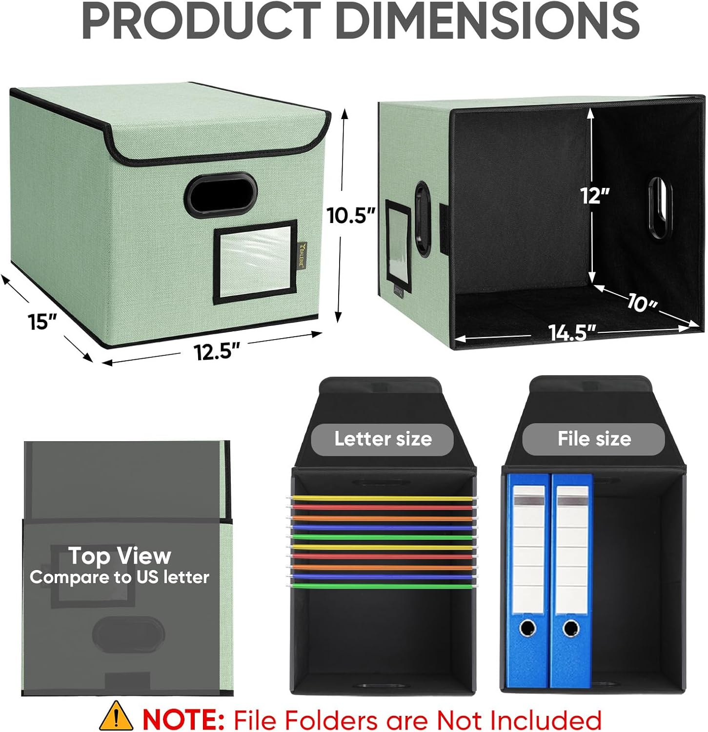 - [OPTIMIZED DESIGN] Designed with convenience in mind, our file storage box helps to elevate your efficiency and organization. The transparent label slot allows for quick identification of the contents stored inside the box. The collapsible design and sturdy handles ensure effortless storage and movement, making it convenient and easy to use.