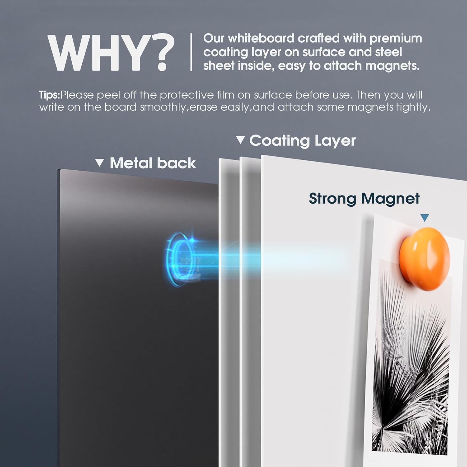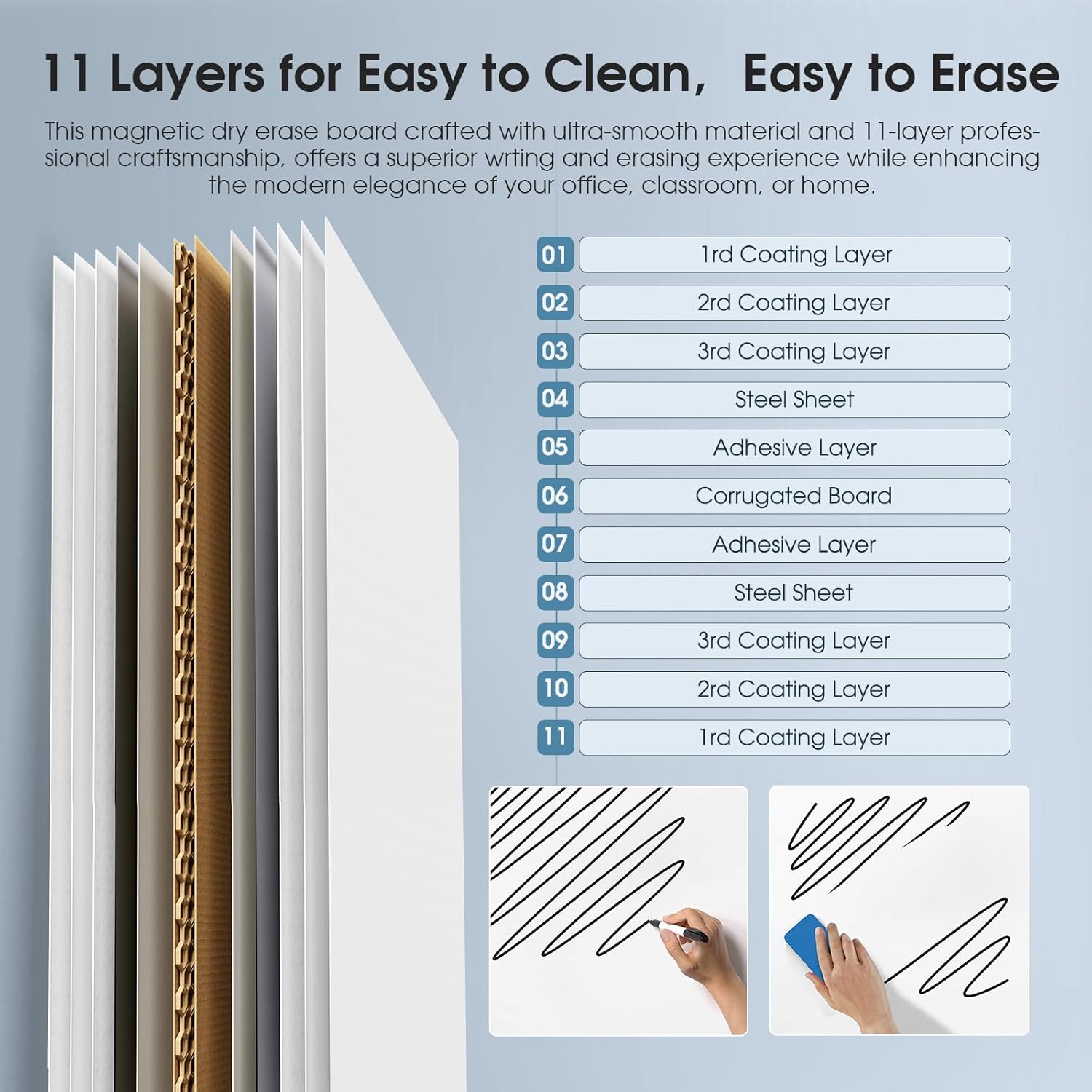 - Smooth Writing & Effortless Erasing: Crafted with a high-quality PET surface, this whiteboard offers an smooth writing experience and allows for easy erasing. Say goodbye to ghosting β your board stays clean and ready for every use.