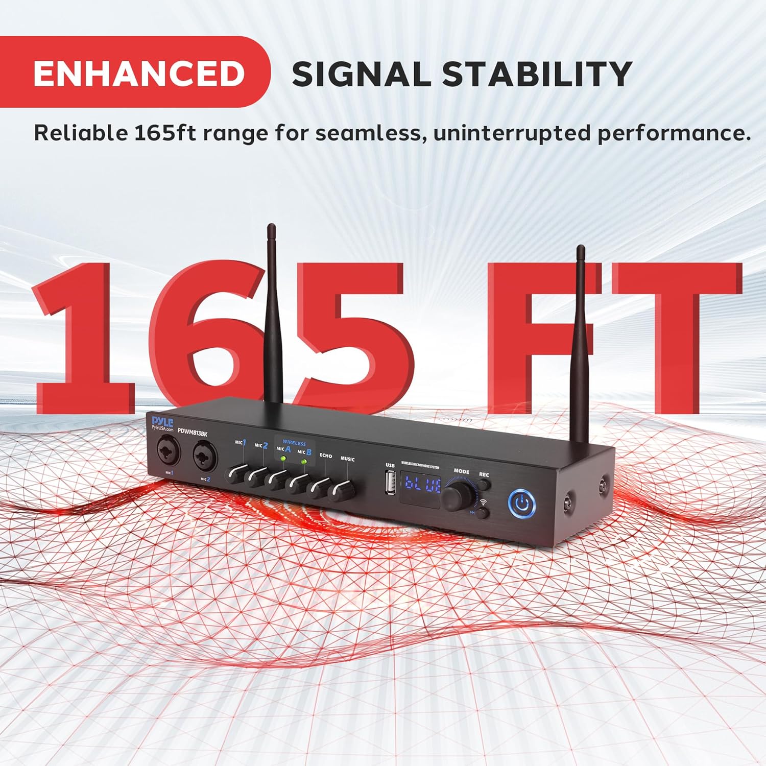 - LONG OPERATING RANGE – Reliable UHF performance reaches up to 165ft, making this wireless mic system perfect for live venues, wireless microphone use, karaoke, and group singing.