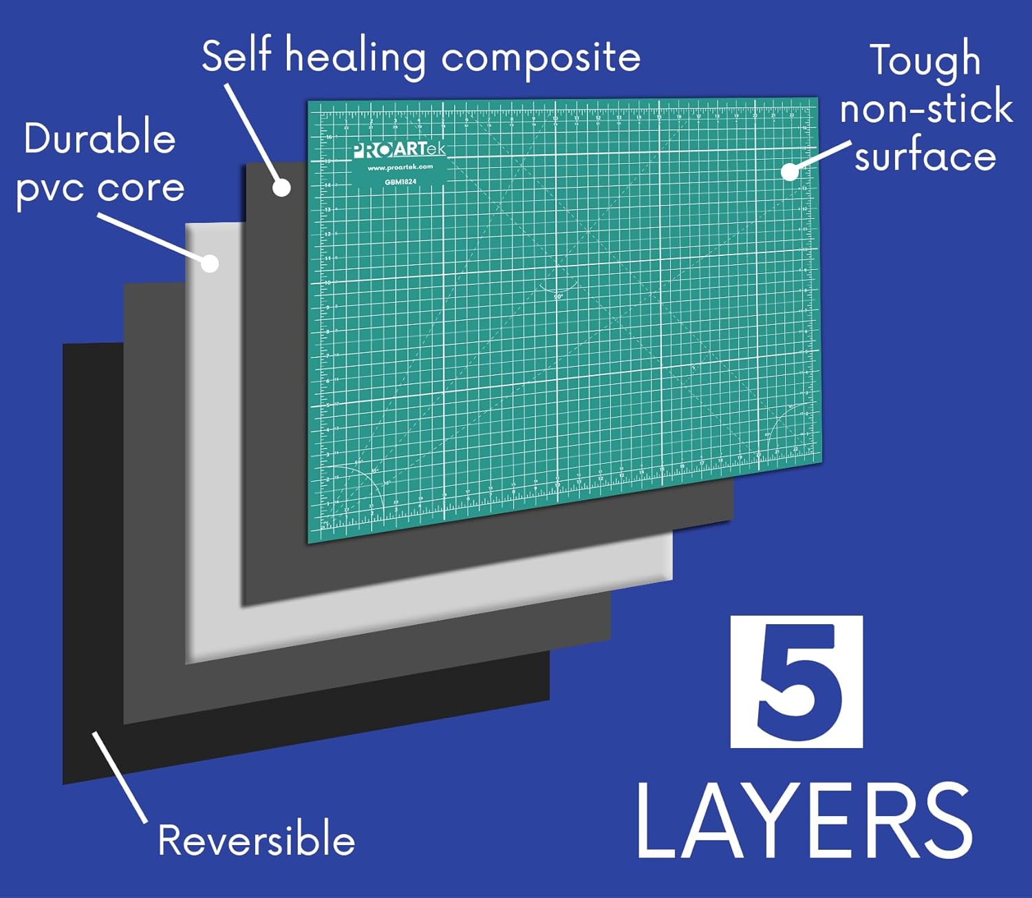 - Made from a vinyl material with self-sealing qualities designed for both rotary blades and straight utility blades that can be cut and slashed constantly without showing marks or cutting lines