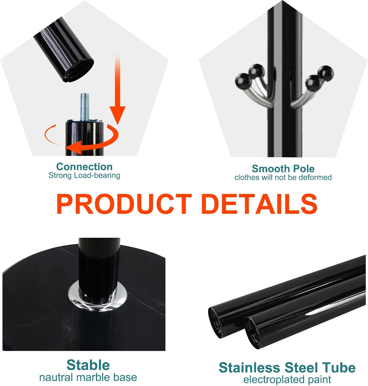 - NATURAL MARBLE BASE: OIRUMIE coat rack base stand is made of 100% natural marble. The diameter of the marble is 15 inches, which is stable and not shaking. The coat racks are convenient for storage and easy to clean