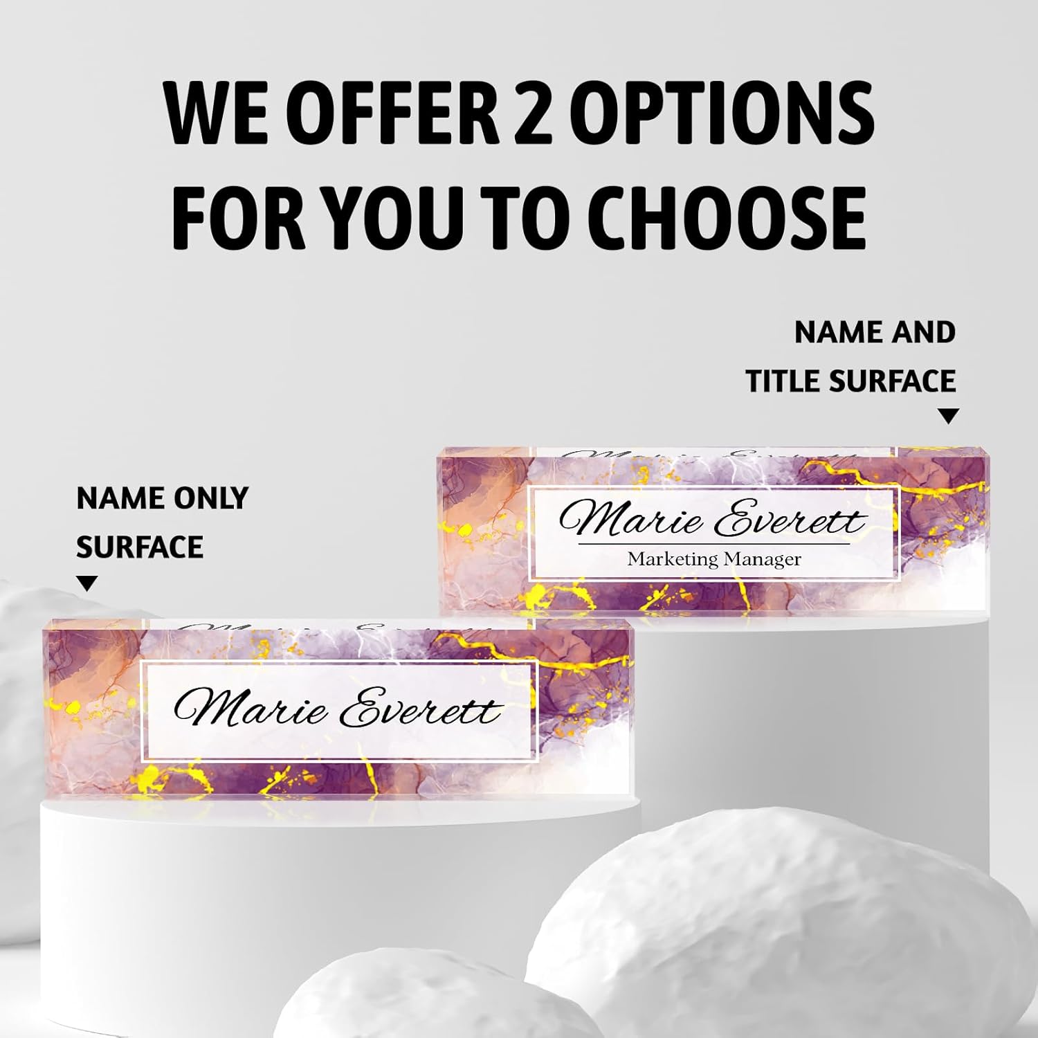 - Quality Name Plate Material: Our name plate for desk is made of high quality crystal clear acrylic, which is very lightweight, strong and durable and will be translucent as new after a long time. Compared to other name plates, name plates made of this material look better in terms of quality and design, appearing more premium and showing personal taste.