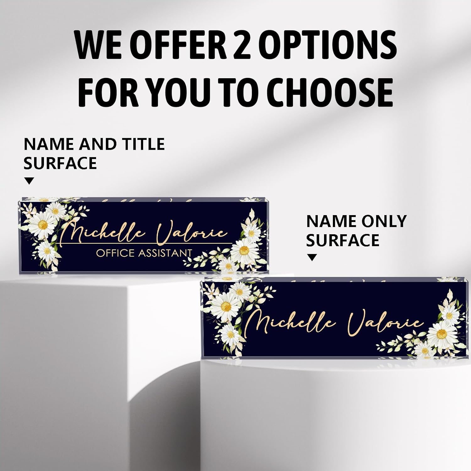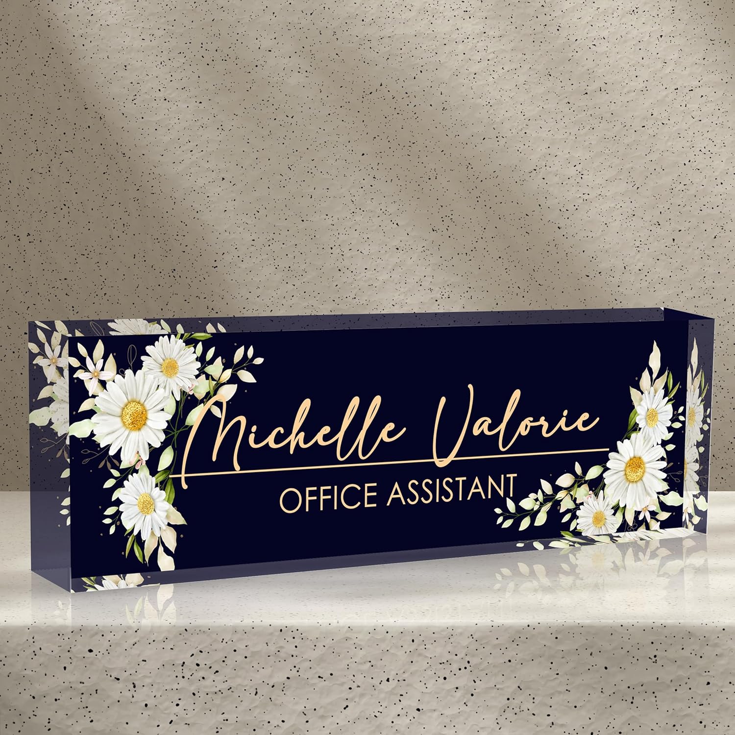 Office Desk Name Plate Personalized, Custom Name Plates for Desks, Name Plate Personalized for Office, Employee Appreciation Gifts (Daisy)