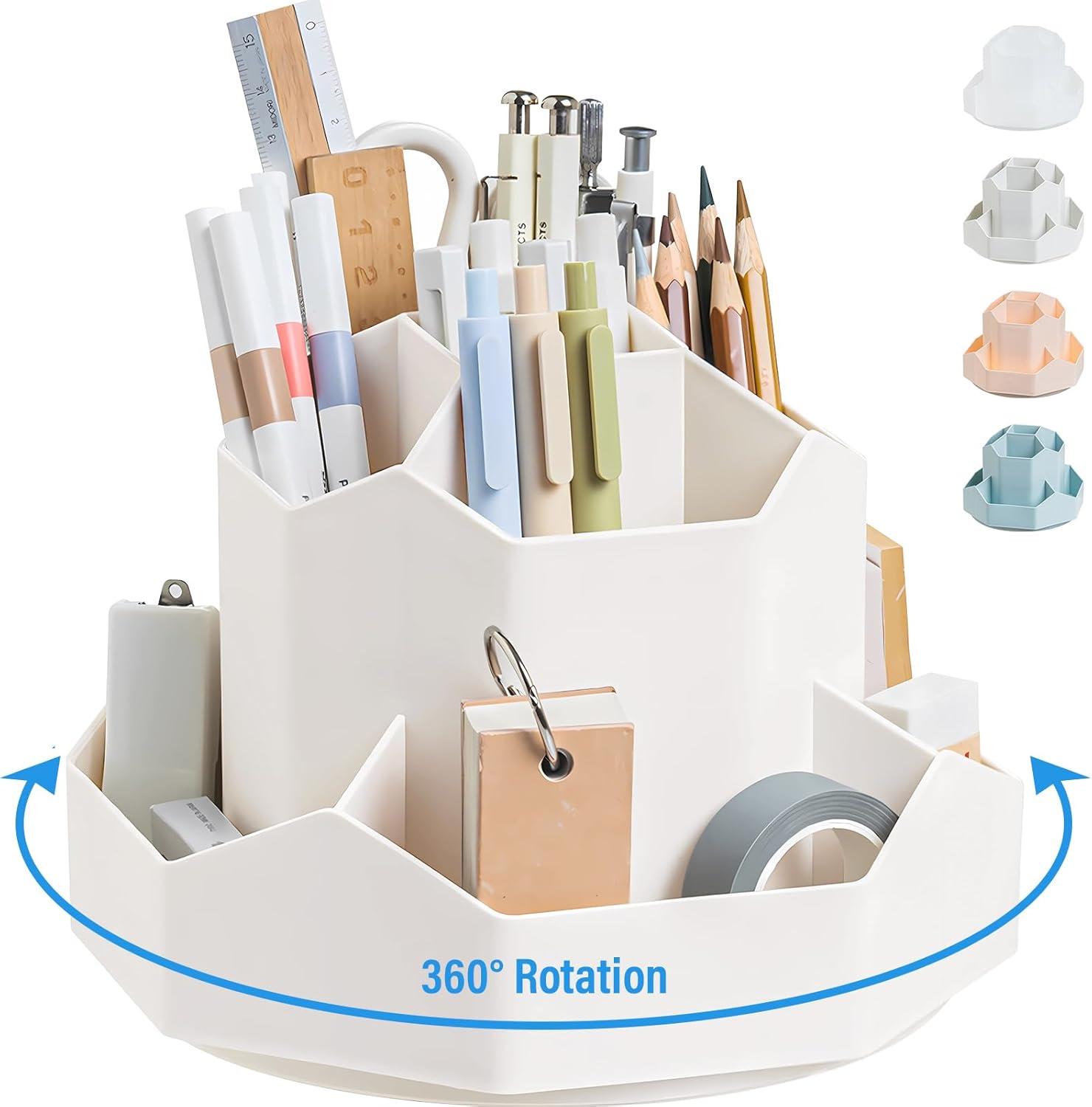 360 Degree Rotation Pen Holder,9 Slots Pencil Holder for Desk,Desk Organizer,Desk Accessories & Workspace Organizers,Apply Office, School, Home(White