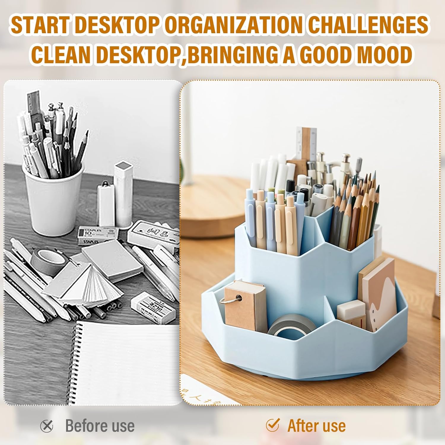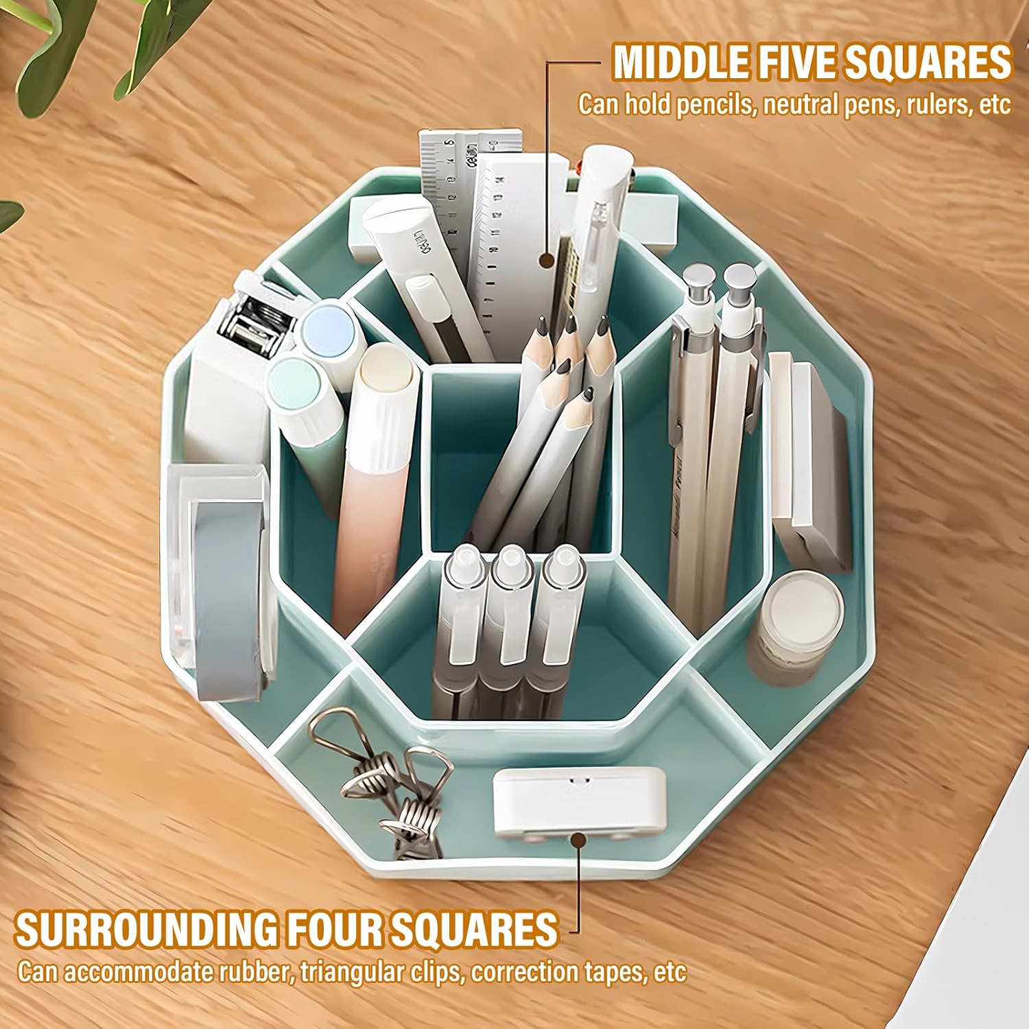 360 Degree Rotation Pen Holder,9 Slots Pencil Holder for Desk,Desk Organizer,Desk Accessories & Workspace Organizers,Apply Office, School, Home(Blue