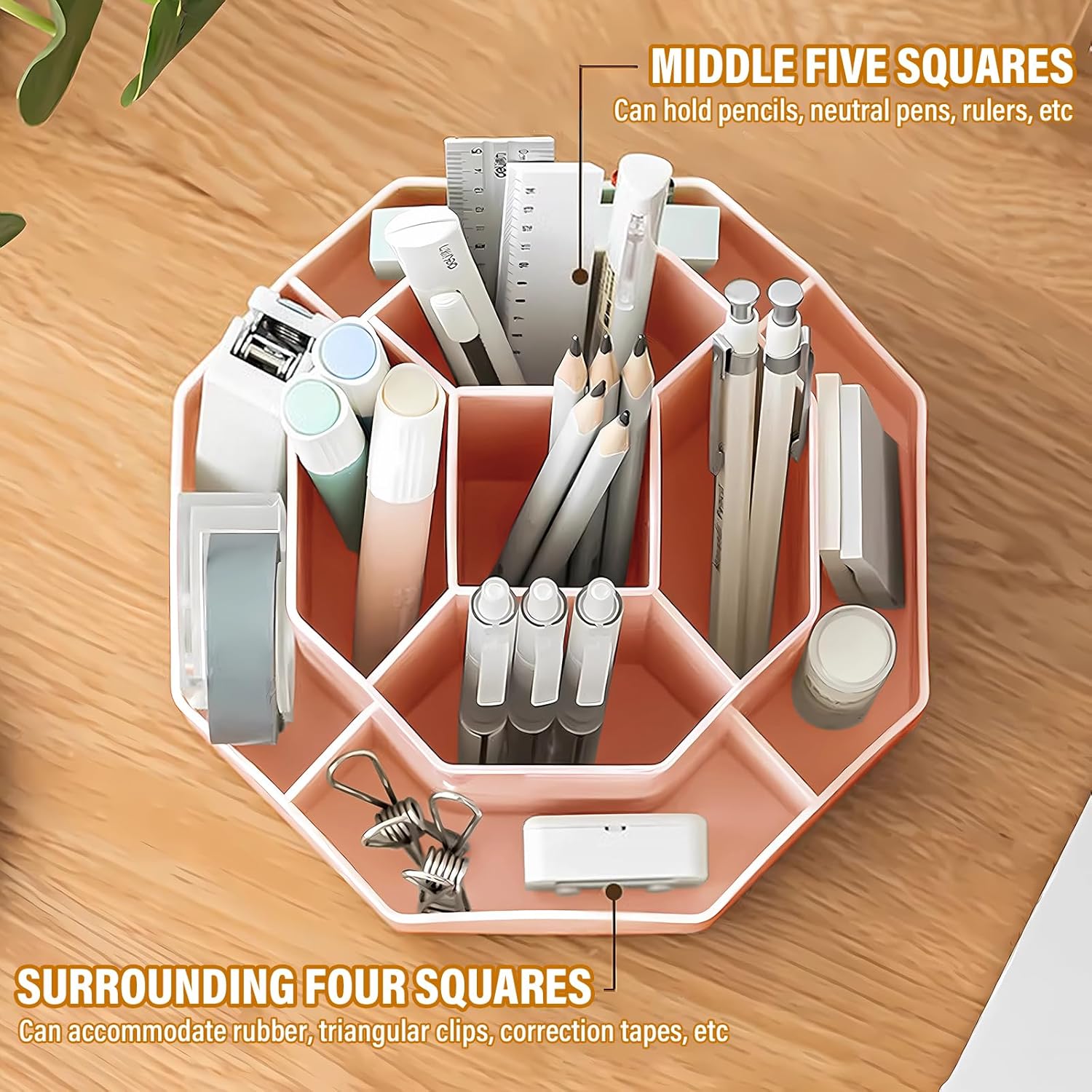 360 Degree Rotation Pen Holder,9 Slots Pencil Holder for Desk,Desk Organizer,Desk Accessories & Workspace Organizers,Apply Office, School, Home(Pink