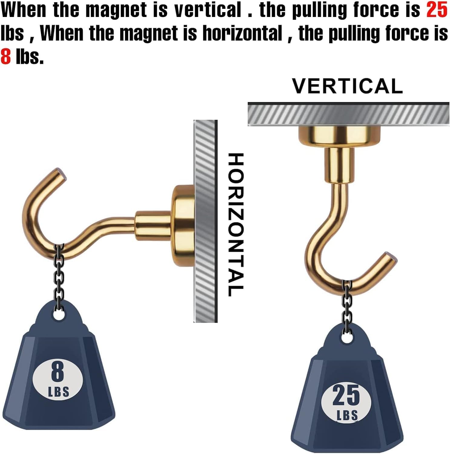 - 【Hanging Capacity】 Silver magnetic utility hooks are great for hanging accessories on the metal surface. They are able to sustain maximum weight up to 30 lbs on vertical hanging and the power reduced by 2/3 on horizontal hanging.