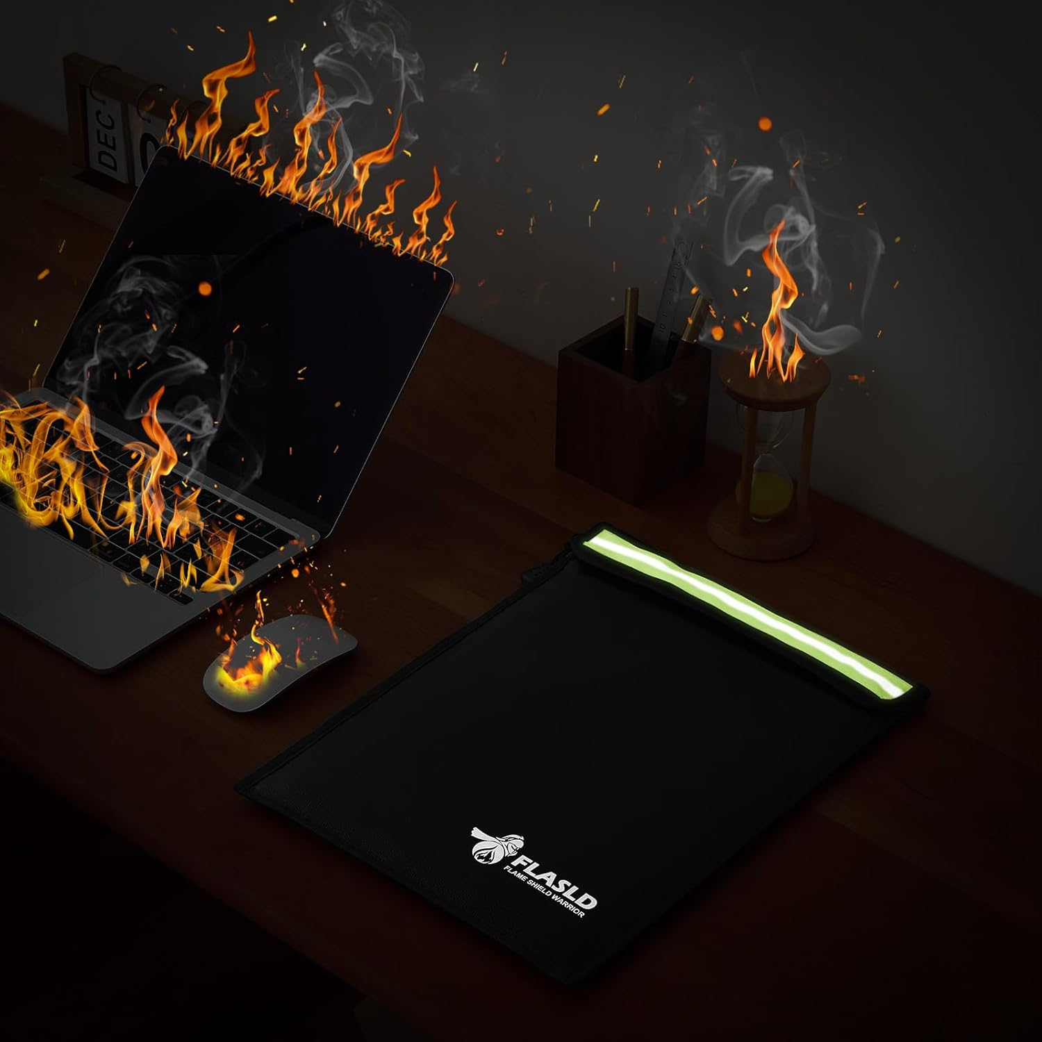 - FIREPROOF - FLASLD fireproof document bags are made of 4 layers high quality fire retardant materials silicone coated fiberglass fireproof safe bag which stands up against the fire and heat up to 1800℉.