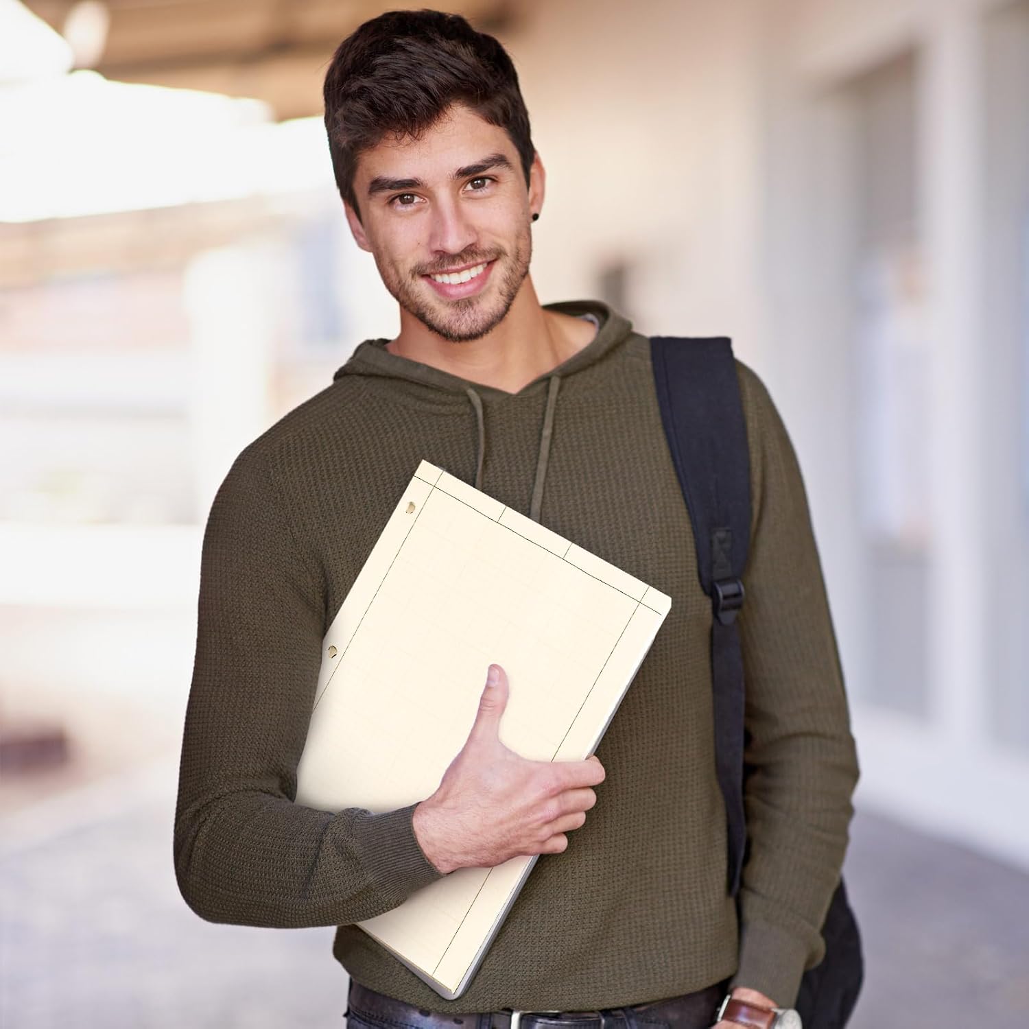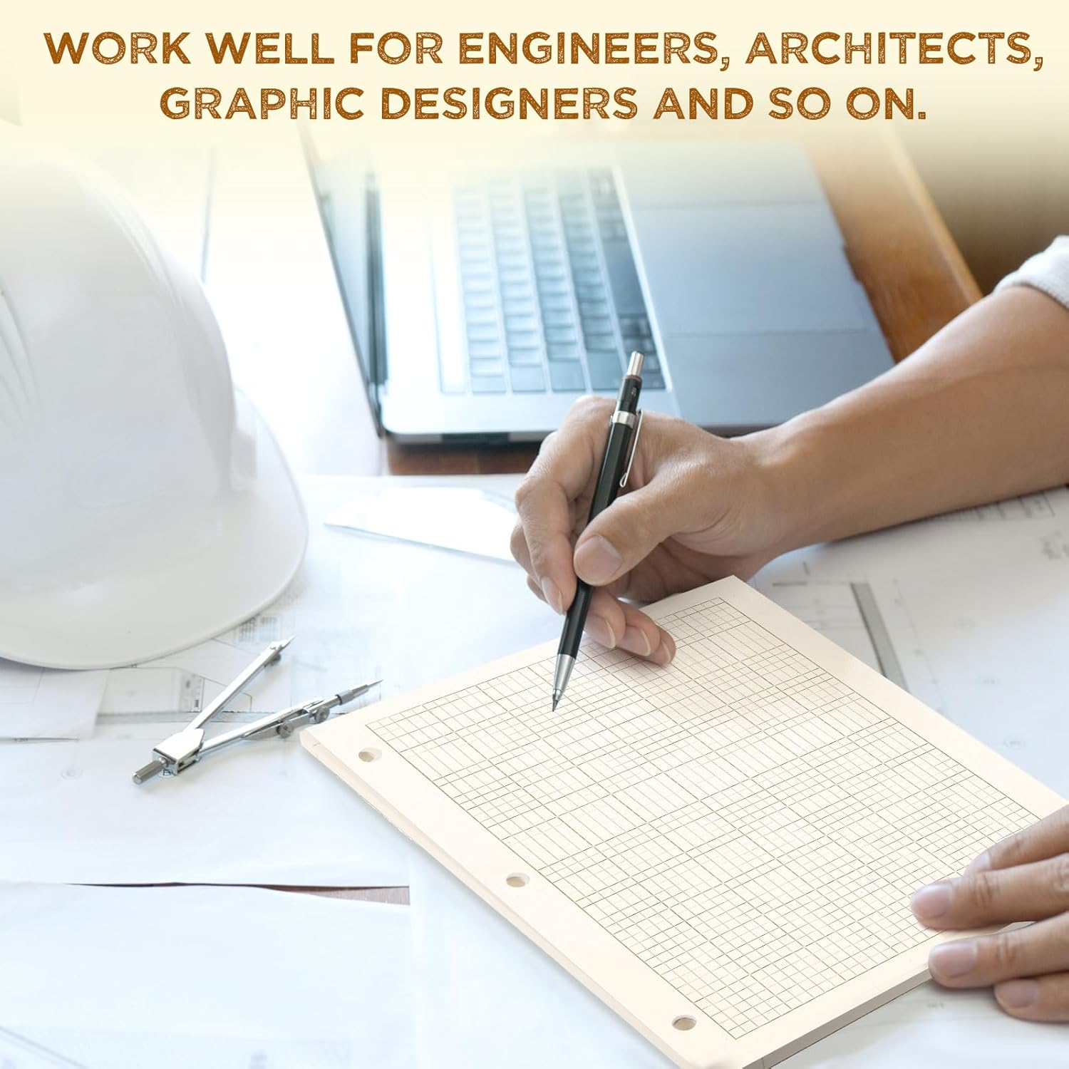 Zhanmai 5 Pack Engineering Computation Pad 5 Squares Per Inch 8.5" x 11" Engineering Graph Paper Notepad 100 Sheets Per Pad, 3 Hole Punched(Beige, Brown)