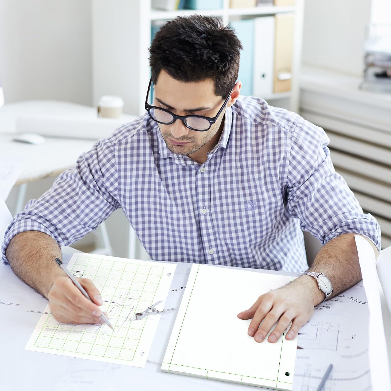 Zhanmai 5 Pack Engineering Computation Pad 5 Squares Per Inch 8.5" x 11" Engineering Graph Paper Notepad 100 Sheets Per Pad, 3 Hole Punched(Beige, Green)
