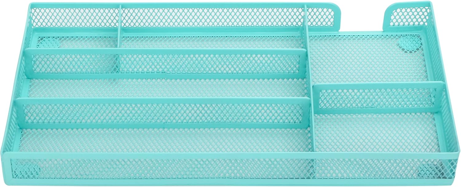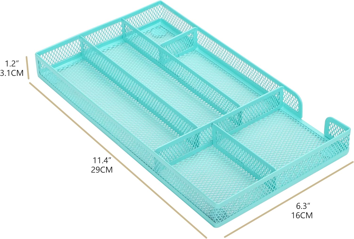 Annova Desk Drawer Organizer Tray for Office Organization - Metal Mesh - Storage Tray with Dividers for Pens, Desktop Accessories, Bathroom, Kitchen, Makeup and Office Supplies (Small, Turquoise)