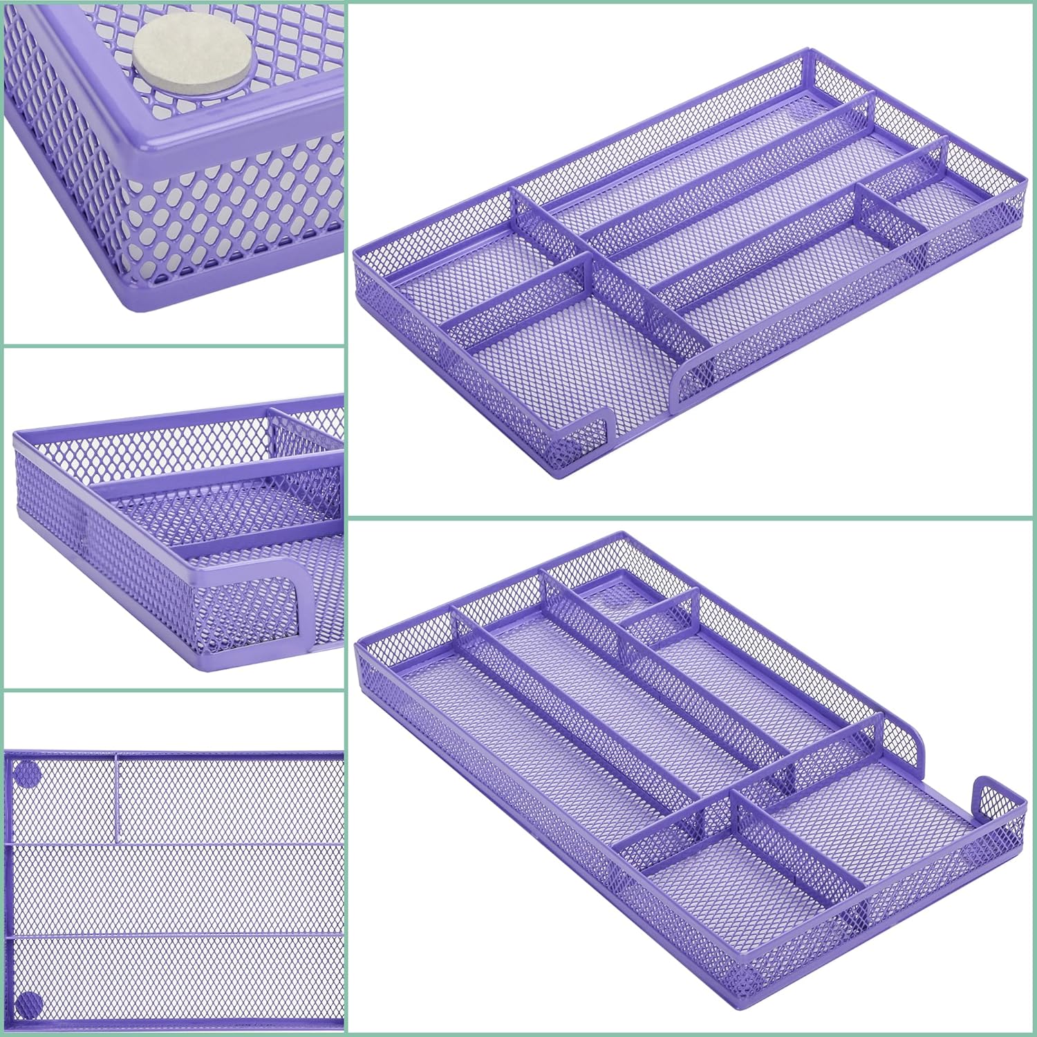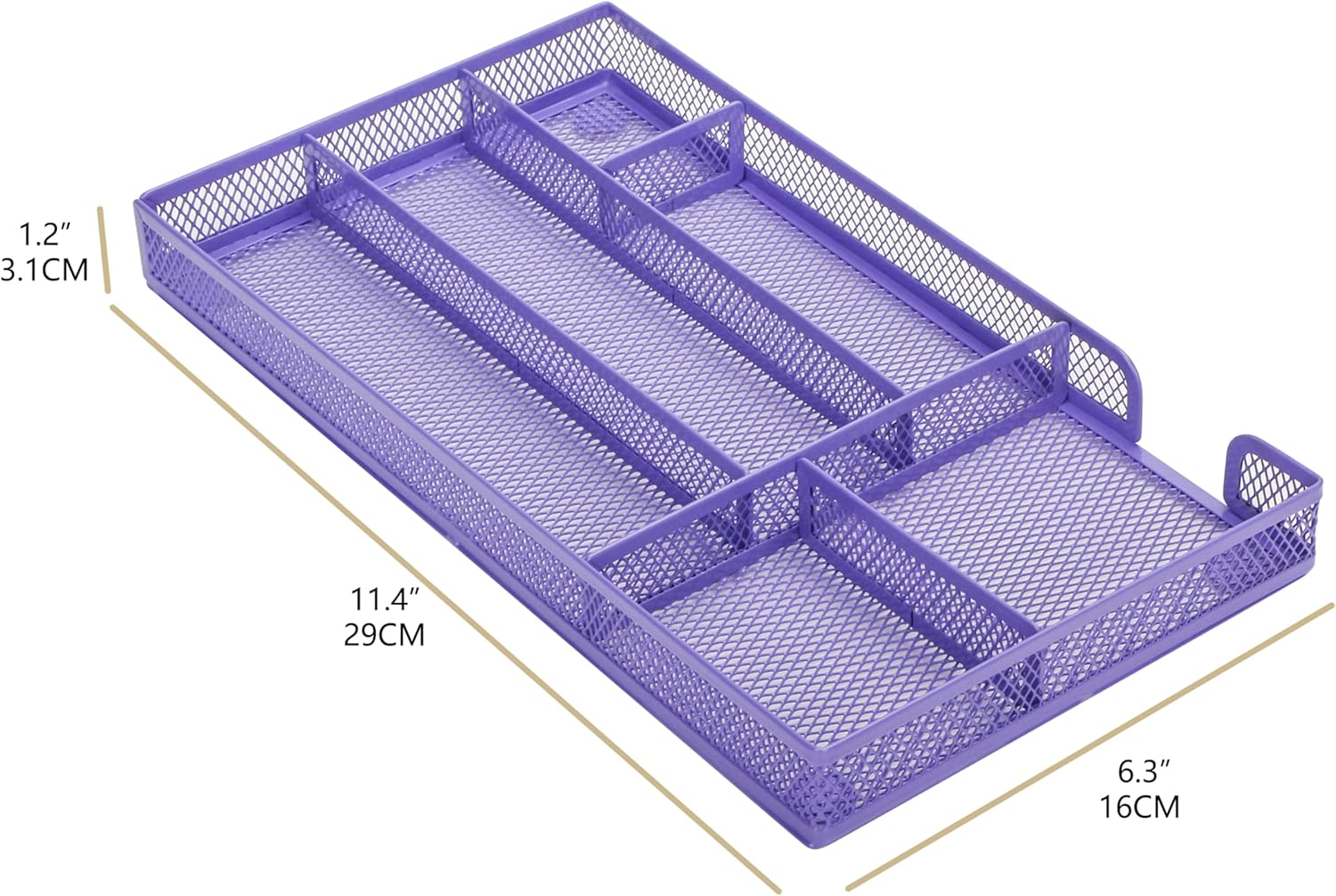 Annova Desk Drawer Organizer Tray for Office Organization - Metal Mesh - Storage Tray with Dividers for Pens, Desktop Accessories, Bathroom, Kitchen, Makeup and Office Supplies (Small, Purple)