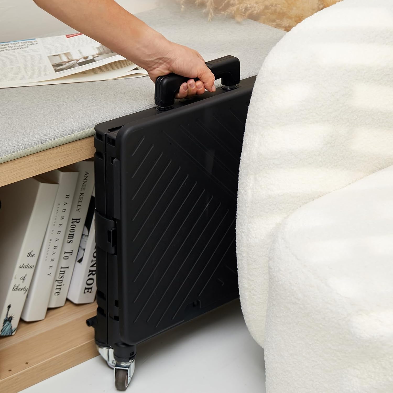 - 【Foldable Design for Convenient Storage】: This compact rolling cart can be easily folded down to a size of 17.72*14.17*2.76 inches, saving space. It's lightweight ( 7.71 pounds) and can be conveniently carried in a backpack or handbag to meet your practical needs. Unfold the hand truck whenever needed for added convenience.