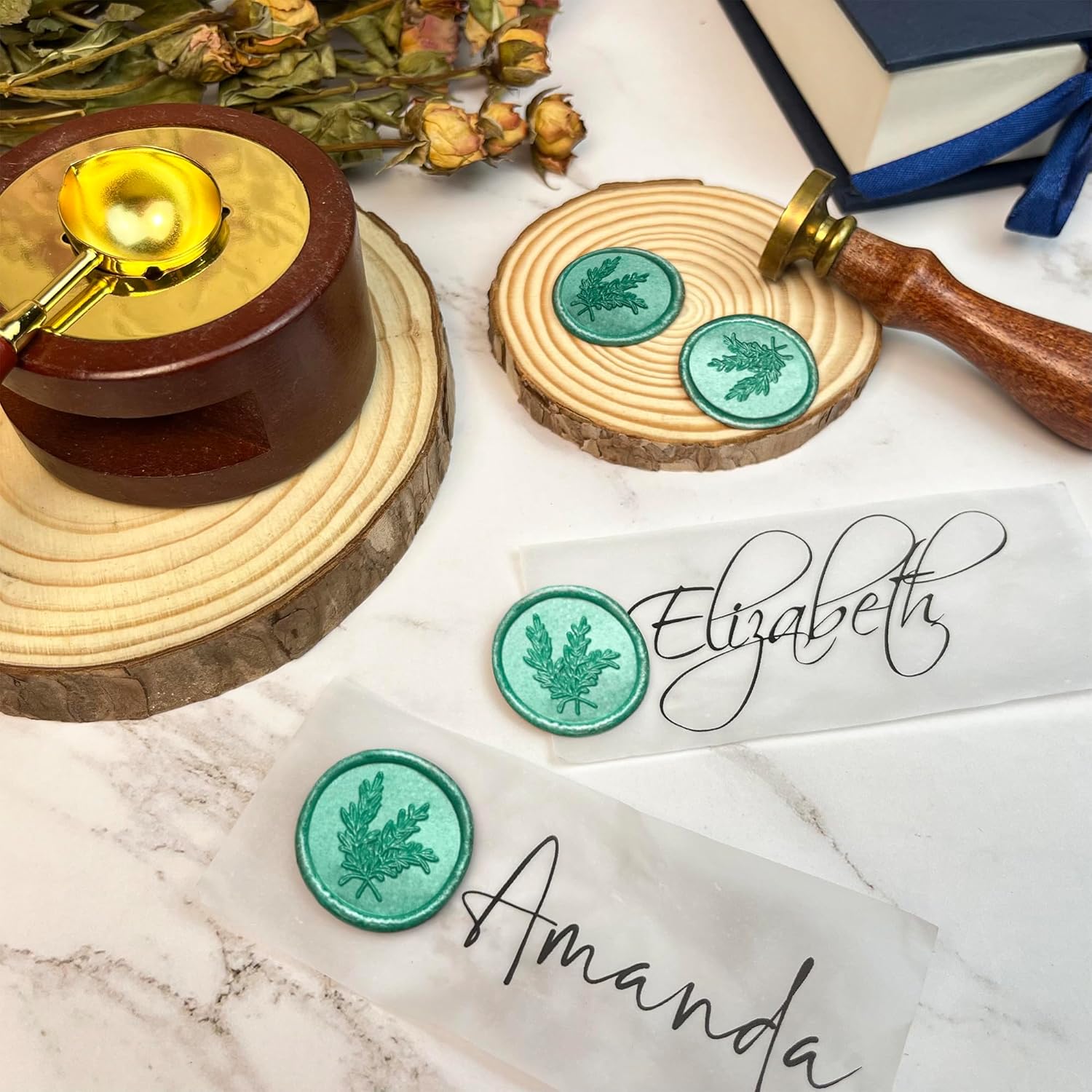 - PACKAGE CONTENT:You will get 25pcs Rosemary Style , wax seal sticker made by pure hand, the wax seal sticker is 1.18 inches/30 mm in diameter, each Rosemary wax seal has almost the same size of adhesive on the back of the sticker, perfect for mailing, you don't need to worry about the strength of the adhesive at all.