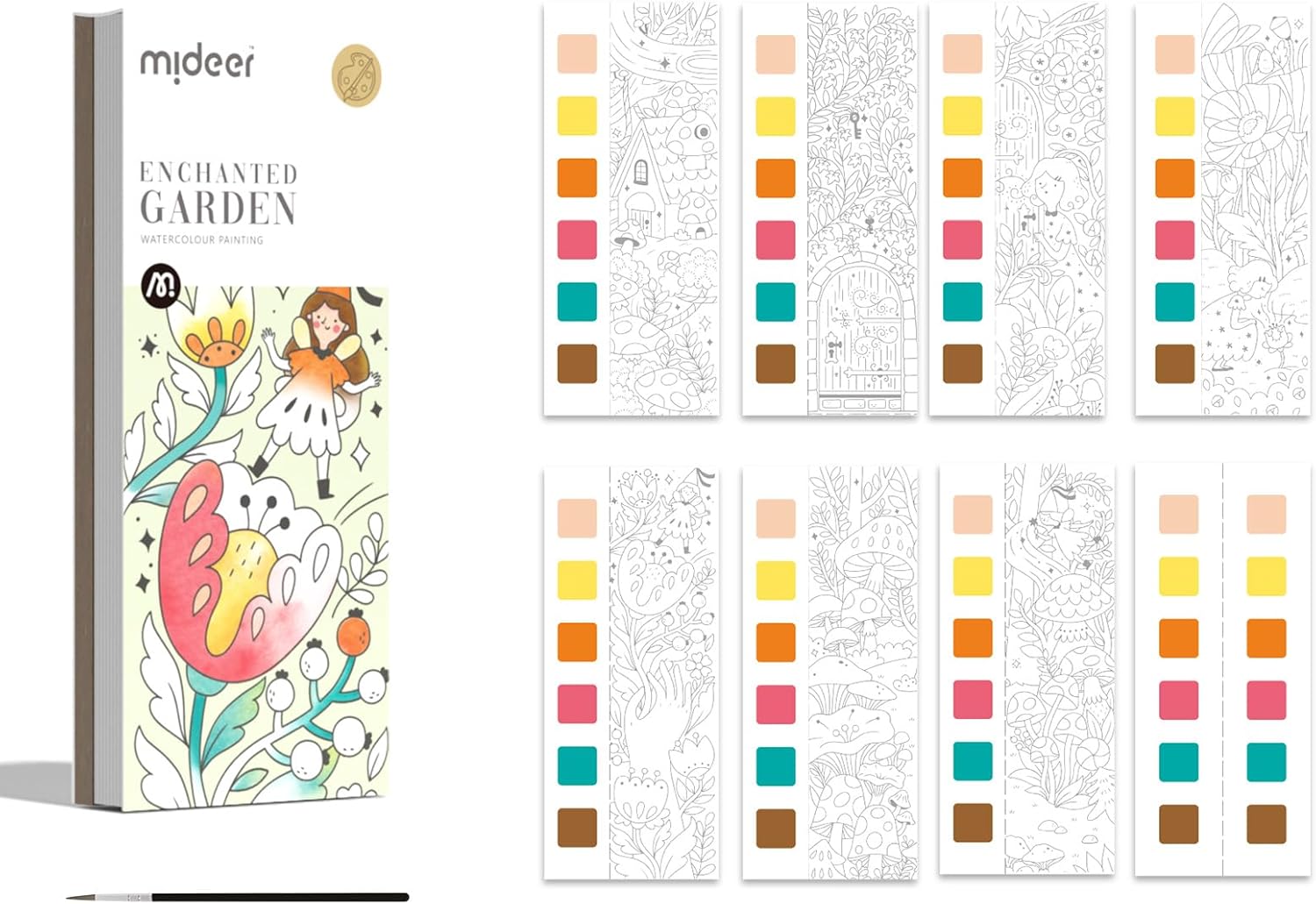 MiDeer Watercolor Painting Book for Kids Ages 4-8, Pocket Watercolor Painting Book Arts and Crafts for Toddlers, Travel Activities Paint with Water Coloring Book Set for Kids 3-8 (Enchanted Garden)