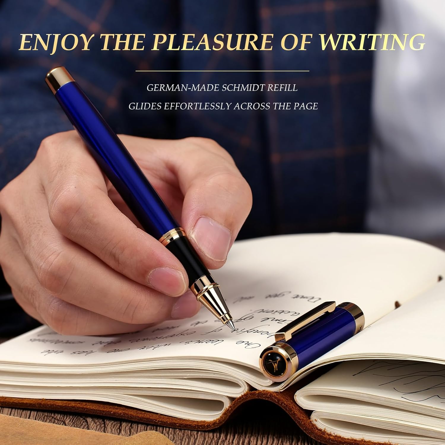 Luxury Rollerball Pen - Stunning Blue Lacquer Pen, 24K Gold Finish, Schmidt Black Refill, Best Pen Gift Set for Men & Women, Office, Professional, Executive, Office, Nice Fancy Designer Pens