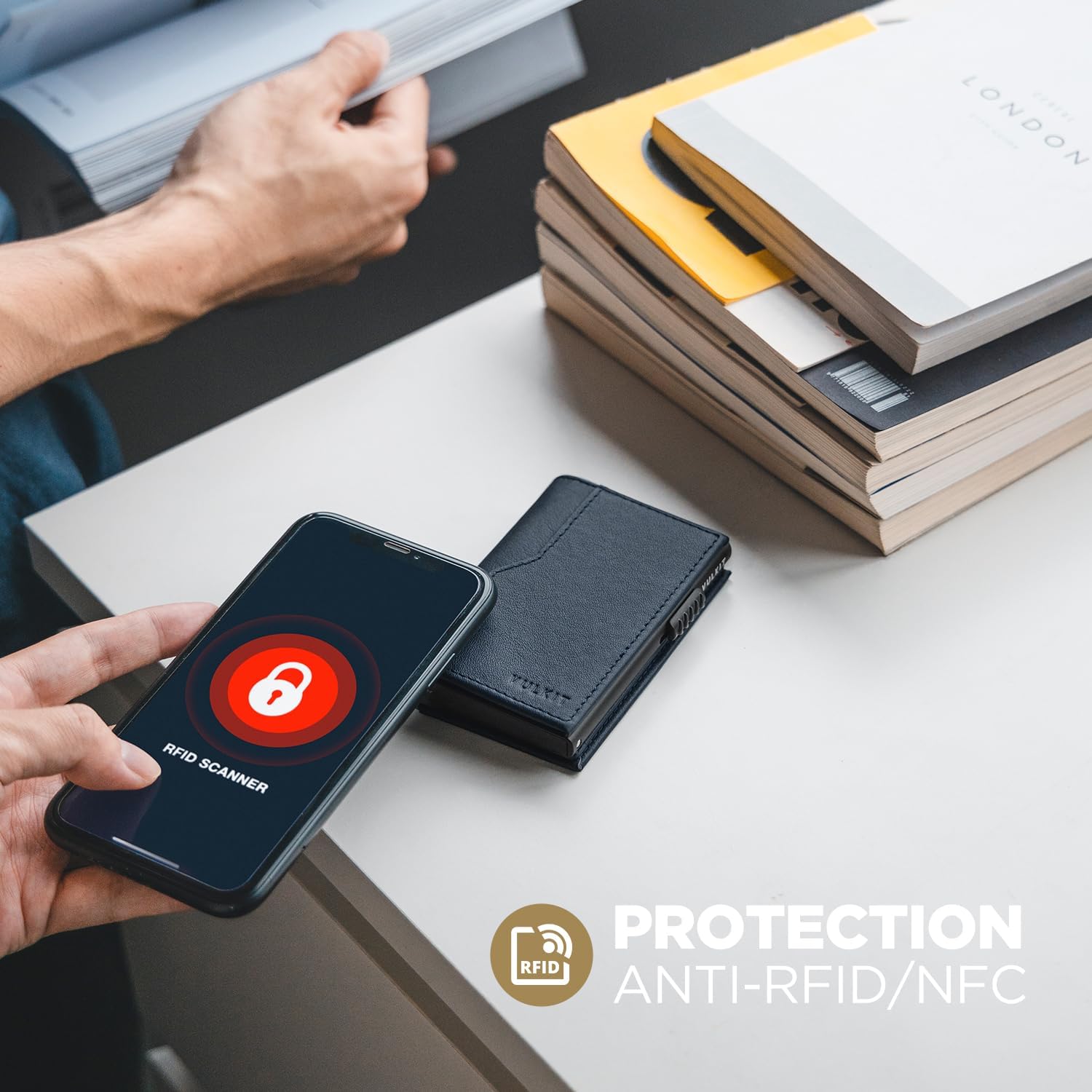 - RFID/NFC SAFETY GUARENTEE: Advanced RFID blocking technology offers 24/7 protection of your personal information and property. No longer threatened by fraud scannings during travel, shopping, or commuting.