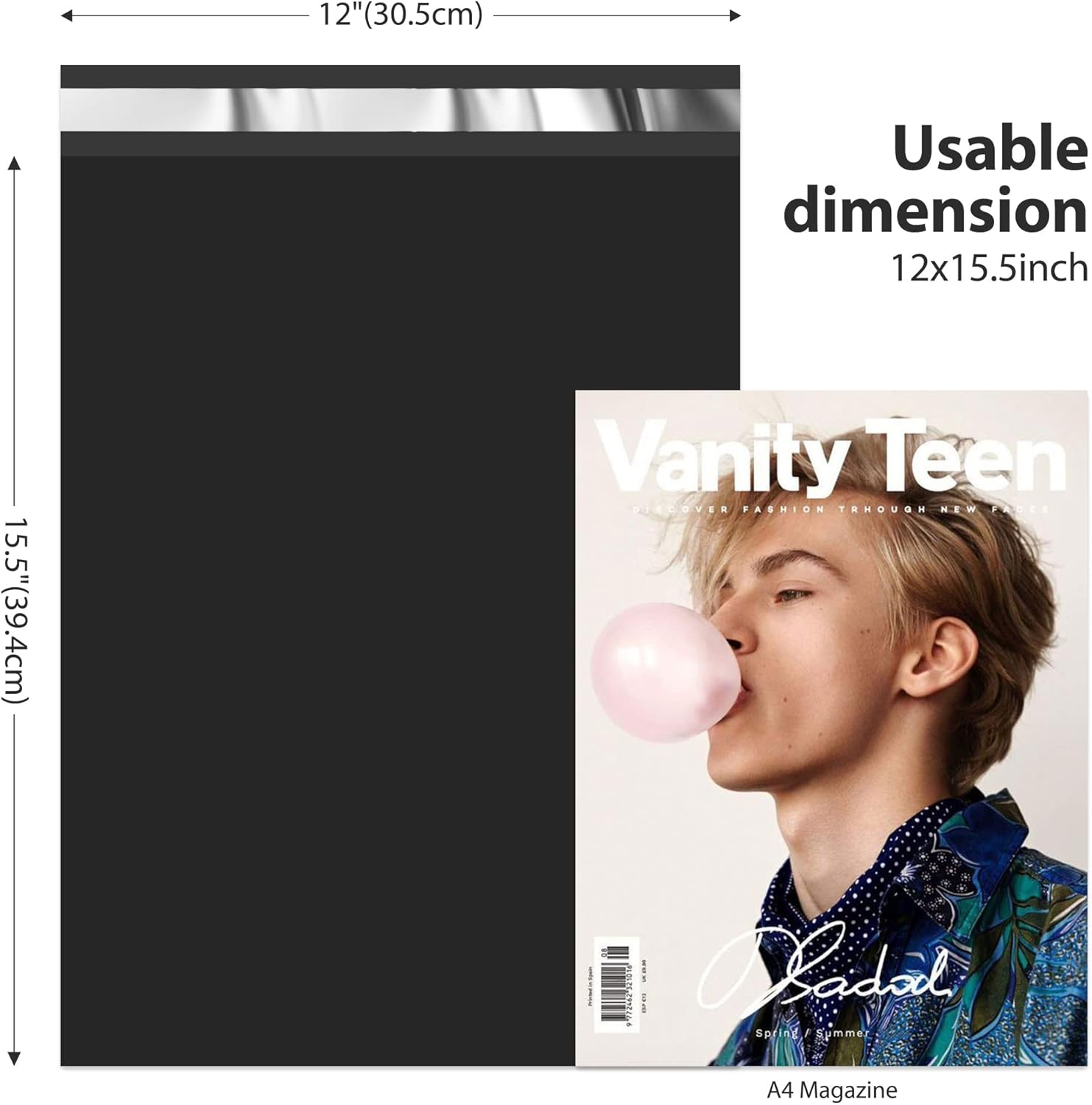 - 【12x15.5 Poly Mailers】The Fuxury 12x15.5 plastic shipping bags,pack of 500pcs,with black color.Suitable for multiple products shipping like T-shirts,skirts,shirts,dresses,jeans,cosmetics,small item.Perfect for small business, boutiques,and online sellers.