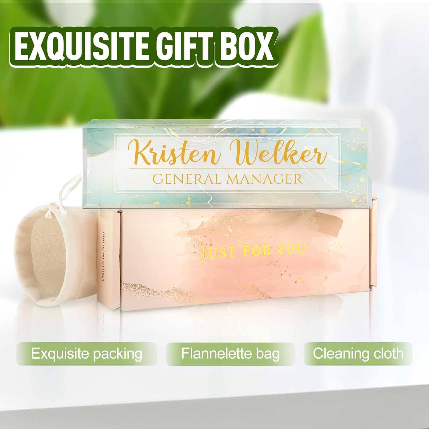 Gowellly Desk Name Plate Personalized - Custom Acrylic Name Plate for Desk - Enterprise Custom Logo/Text nameplates - Employee Appreciation Gifts (Light Green Marble)