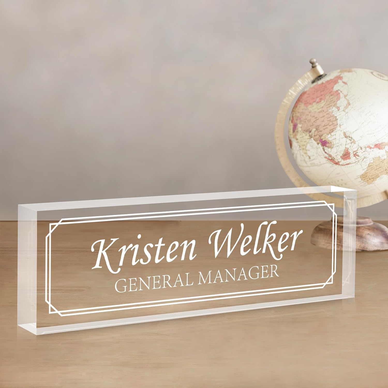 Gowellly Desk Name Plate Personalized - Custom Acrylic Name Plate for Desk - Enterprise Custom Logo/Text nameplates - Employee Appreciation Gifts (engrave-3)