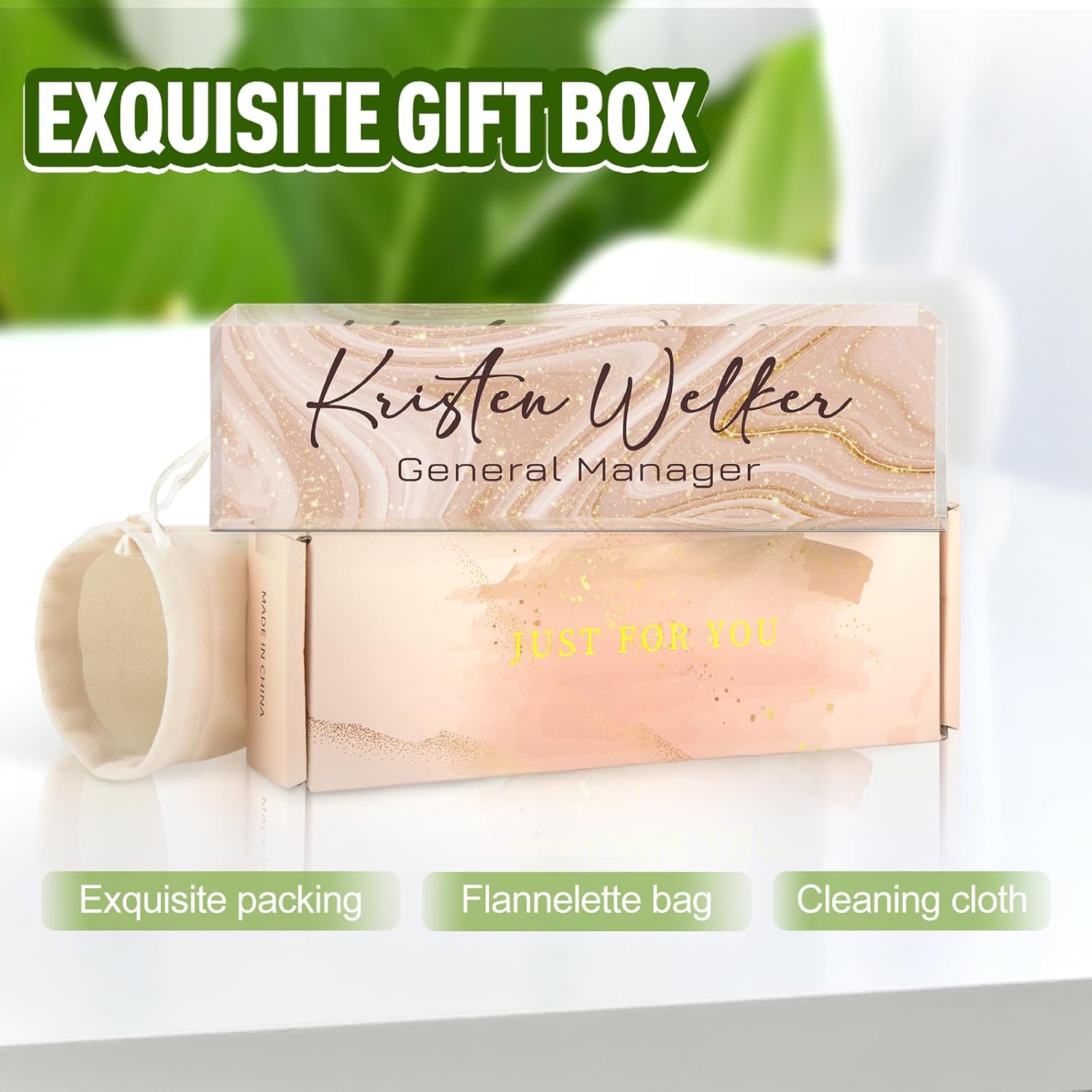 Gowellly Desk Name Plate Personalized - Custom Acrylic Name Plate for Desk - Enterprise Custom Logo/Text nameplates - Employee Appreciation Gifts (Light Pink-1)