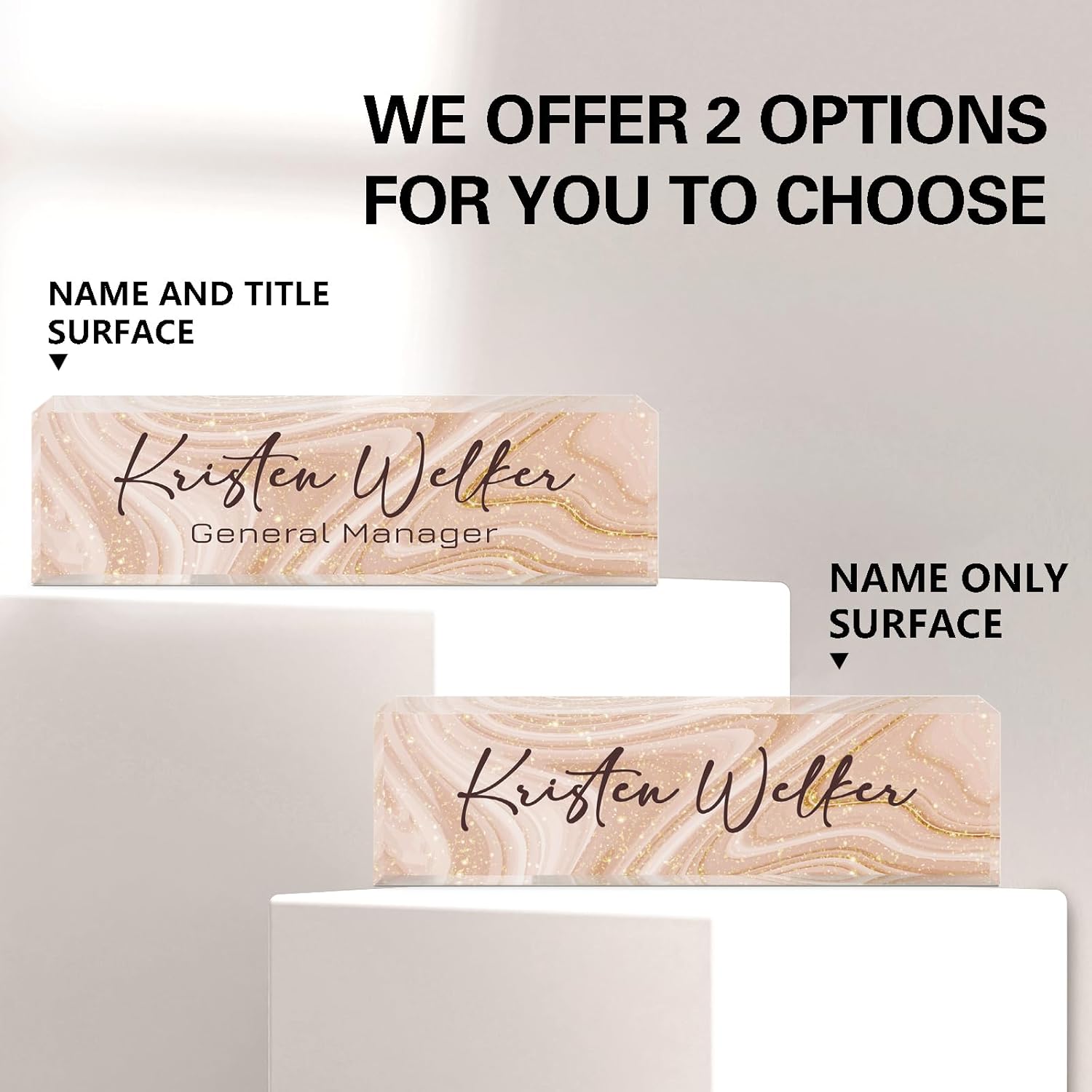 - đăPersonalization OptionsăWe have hundreds of designs for you to choose from, there is something for you. Professional designers design unique styles, laser engraving will never be engraved, there are 4 thicknesses and 2 Layout Options to choose from, the thickness is 0.59/0.79/0.98/1.2 inches to meet all your needs, choose the one that suits you and click Brighten up your desk. Please click the "Customize Now" button to customize your exclusive nameplates together!
