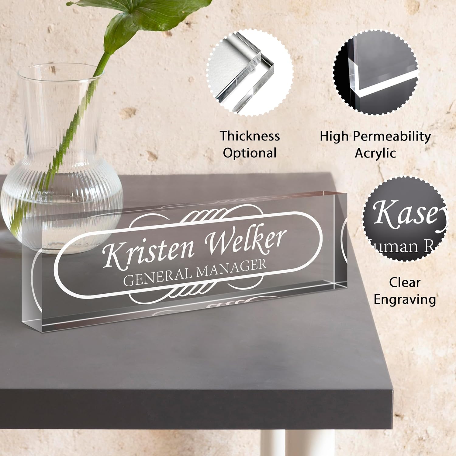 Gowellly Desk Name Plate Personalized - Custom Acrylic Name Plate for Desk - Enterprise Custom Logo/Text nameplates - Employee Appreciation Gifts (engrave-8)