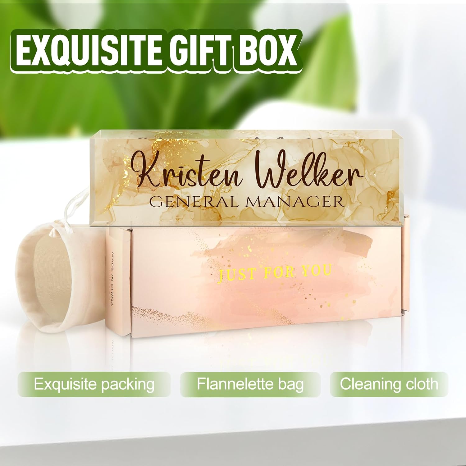 Gowellly Desk Name Plate Personalized - Custom Acrylic Name Plate for Desk - Enterprise Custom Logo/Text nameplates - Employee Appreciation Gifts (Golden Gilt)